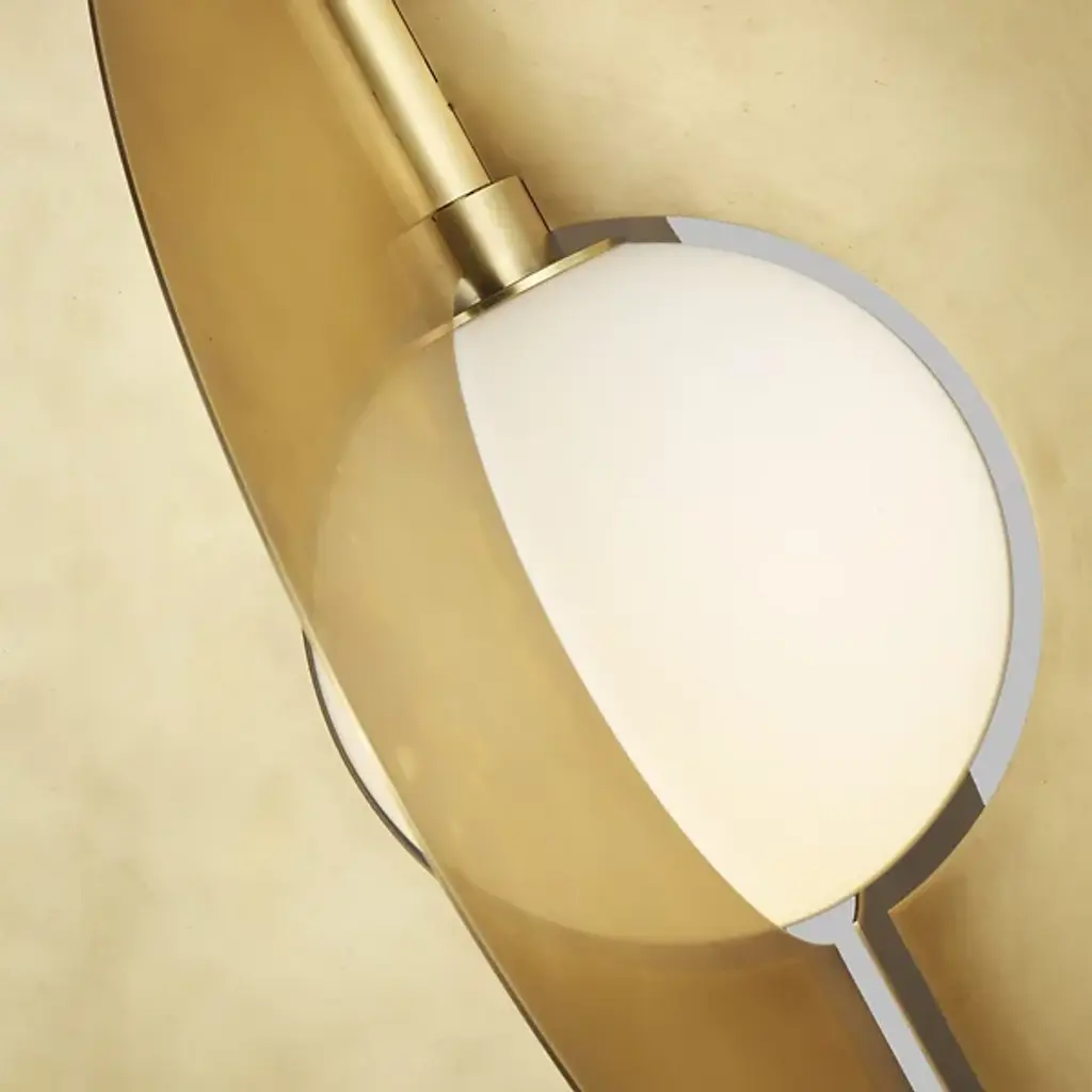 The Orbel Round Grande Pendant by Visual Comfort Modern, formerly known as Tech Lighting, is a modern piece that artfully pairs metal and glass together. Inspired by Mid-Century modern art with contrasting geometric shapes, this pendant features a set of boldly finished metal disks with open centers that intersect to frame a smooth, glass sphere. Simple yet striking, this generously proportioned design is suspended by a sleek down rod and offers plenty of light to its surroundings, making a statement wherever it is installed.