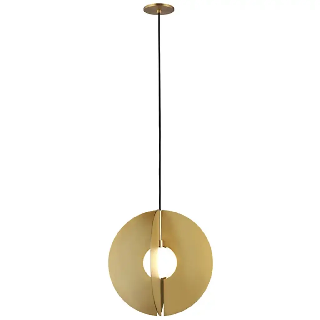 Rounded and opulent, the Orbel Round Pendant by Visual Comfort Modern, formerly known as Tech Lighting, is the ideal fixture when it comes to providing even amounts of soft, diffused lighting. The fixture’s focal point rests on its framework, which resembles two interconnecting circle piece that intersects at an “X” around the spherical glass diffuser. When lit, the piece can exude a warm and ambient style of light that makes it suitable for use in areas like entryways, living rooms, bedrooms, and even in commercial areas like lobbies and conference spaces.
