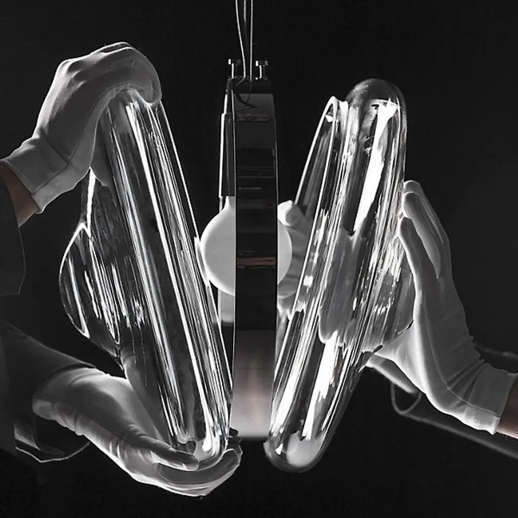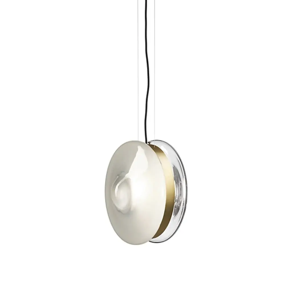 Give your home a contemporary aesthetic with the Orbital Pendant by Bomma. A beautiful shade of Mouth Blown Lead-Free Crystal reinforced by a metal plate. Within this shade is contained an LED, which lets light radiate throughout your environment with ease. Your pendant hangs neatly in the air through attachment to a ceiling canopy. This versatile fixture can be placed in foyers, living rooms, and more. The Orbital Pendant is designed by Studio deFORM, an artistic team informed by years of experience gained through time spent at the Royal College of art in London and the UMPRUM in Prague.
