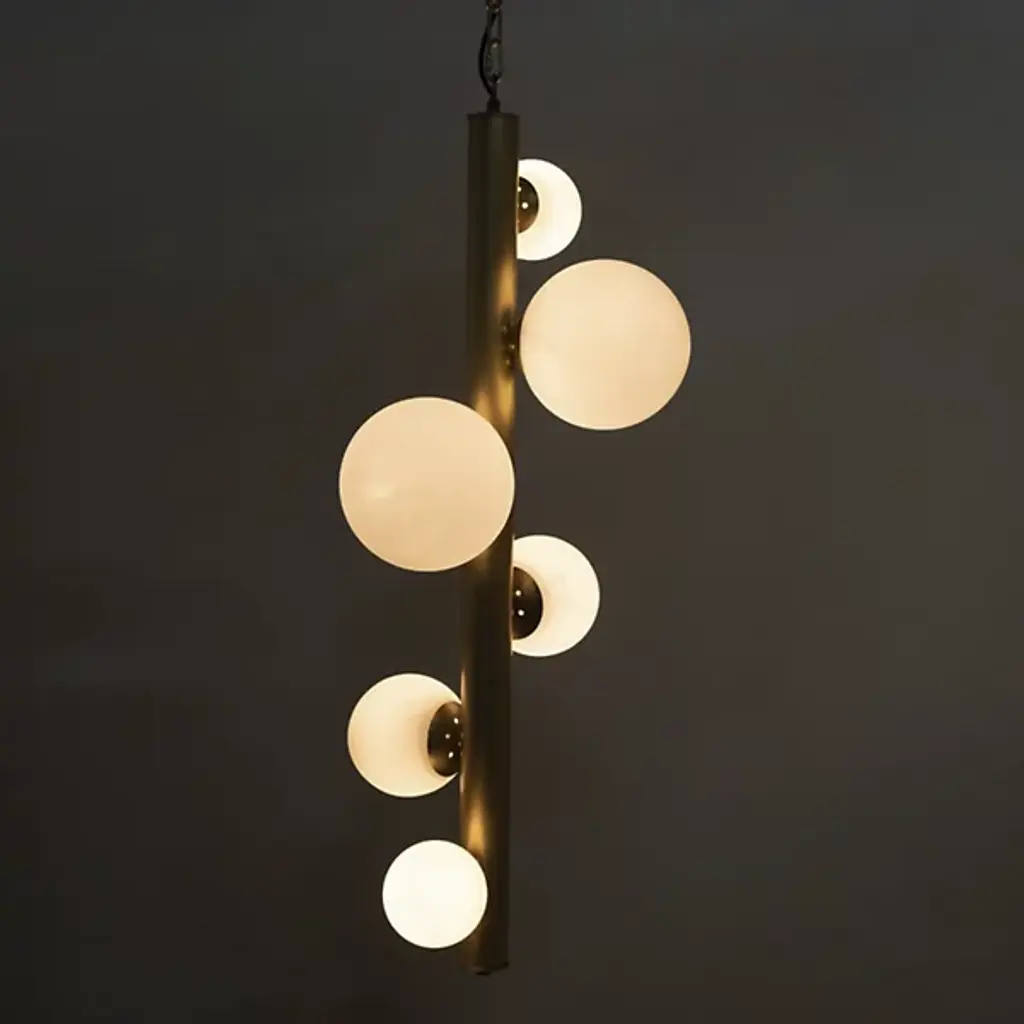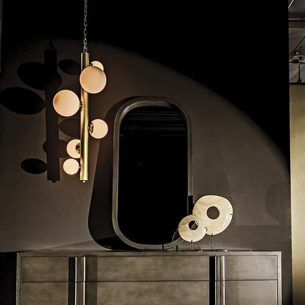 The Orellana Pendant from Noir is a retro-futuristic item that seamlessly blends mid-century modern lines and antique metal. Six glowing orbs are cradled by the artful design, creating a captivating homage to the classic pendant. The fusion of timeless elegance and modern aesthetics makes it an illuminating centerpiece, casting a warm glow while adding a touch of mid-century charm to any space. Illuminate your surroundings with a nod to the past and a vision of the future.