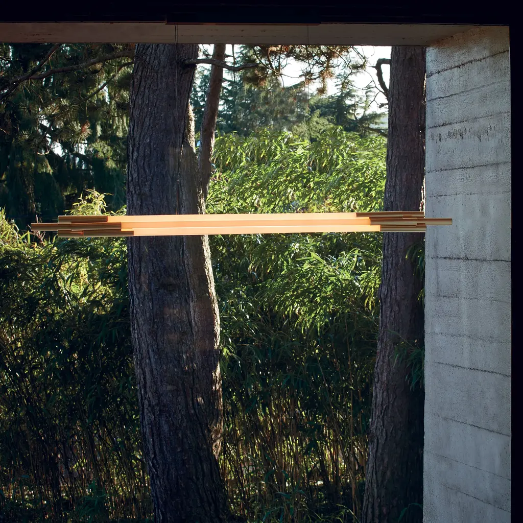 Looking like a cross between skyward shooting stars and a bunch of pick-up-sticks, Sebastian Summa bundles an array of LED-powered opal glass tubes in his elegantly horizontal pendant. The Berlin-based designer once trained as a blacksmith and says his inspiration also reflects the worlds of science fiction and astronomy. Capped with gleaming metallic end-pieces, his glowing lighting arrangement brings a wondrous presence that's apropos in a variety of environs.
