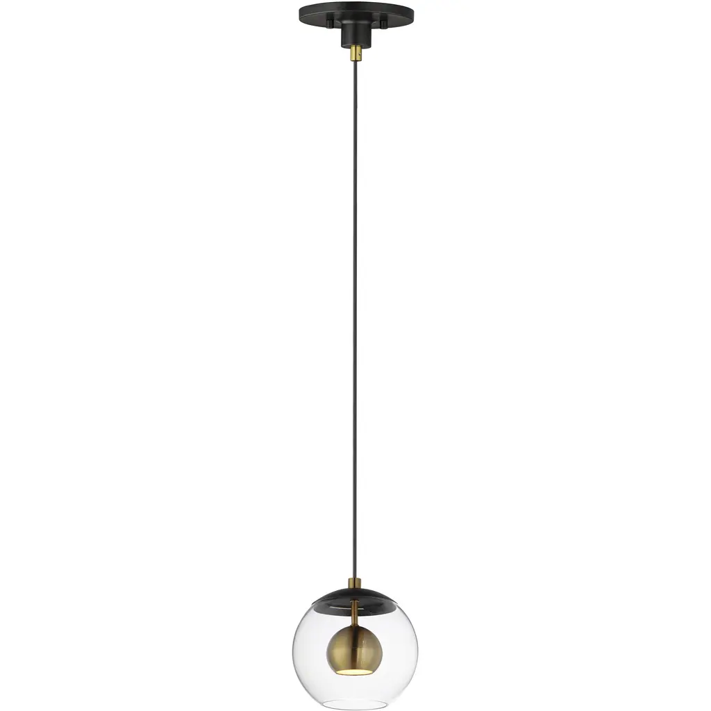 Origami Led 6 Inch Bronze With Gold Leaf Pendant Ceiling Light, Frosted Clear Glass