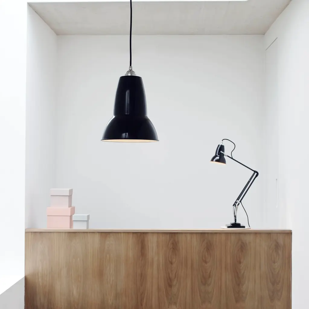 With the Original 1227 Pendant Light, the archetypal Anglepoise form further extends its modernist relevance. Dating back to 1934, engineer George Carwardine's metal shade design is fitted out with chrome detailing in this contemporary version as a highly functional and handsome hanging fixture. Be it in a bedroom, above a dining table or in a workspace, consider this pendant singly or in multiples to striking effect.