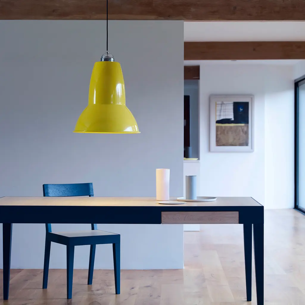 Give your home’s décor a bolder look with the over-sized Original 1227™ Giant Pendant from Anglepoise. Featuring the same shade shape of the 1935 Anglepoise lamp, this pendant brings a bit of design history into contemporary interiors. At the same time, the design has a distinctive appearance thanks to the larger size that stands out anywhere. This is especially true for the brighter color options of the series, like Citrus Yellow or Crimson Red. Made from aluminum, the shade features a gloss or satin powder paint finish. Apart from the chrome plated ceiling rose, this large pendant also comes with chrome plated fittings and a chrome junction box mounting set. Use the Original 1227™ Giant Pendant to create a focal point in any space, from a kitchen and dining room to a meeting room or a coffee shop.