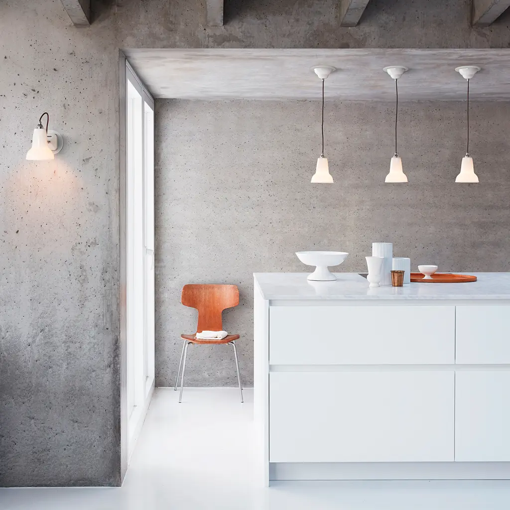 Elegantly simple and versatile, the Original 1227™ Mini Ceramic Pendant can make any room brighter and more stylish at the same time. The minimalist design draws inspiration from the original 1935 Anglepoise lamp. It features the same shade shape, but softens the design with a bone china material that becomes translucent when the lamp is switched on. Designed as a pendant, the light is suitable for a wide range of spaces, whether installed on its own or in a cluster. It’s perfect for kitchens, bars, and dining rooms. Manufactured with a durable build, the pendant comes with chrome plated fittings, a painted ceiling rose, and a bone china shade with a gloss paint finish. A cluster design from the same series is also available separately, along with ceramic table and wall lamps.