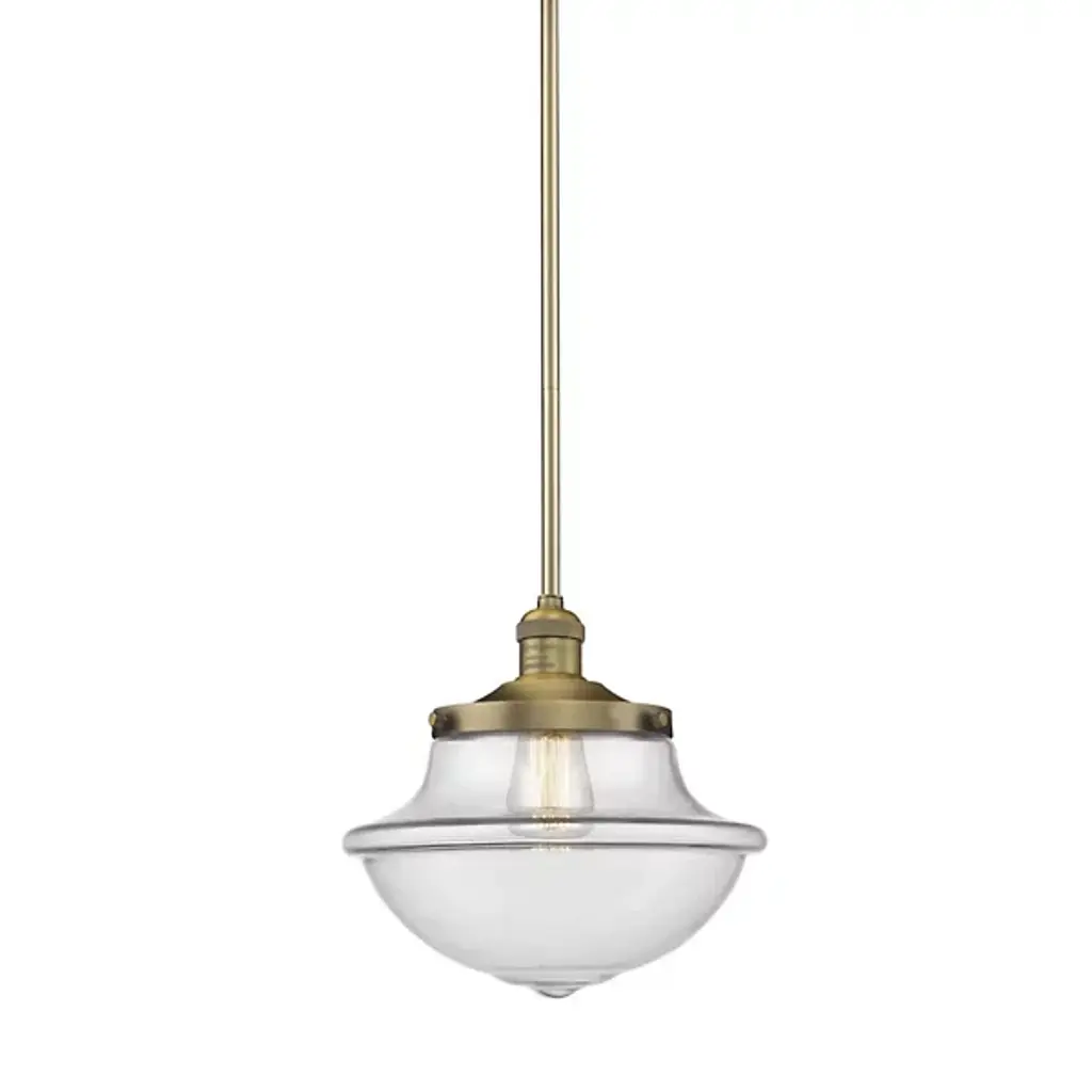 Set the ambiance of your rooms with the Orion Pendant from Alder & Ore. This piece sits flush over your flat or sloped ceiling while bringing an eye-catching sense of verticality with its slim downrod. A short lamp holder caps off the bottom with a classically engraved detail and industrial knurled accenting. Delightful in its layers of curves, the glass shade adds an ornamental quality to the piece that stands out from across the room. The golden, textured filaments of vintage-style bulbs make a visual impact as they shine through in a warm ambient glow.