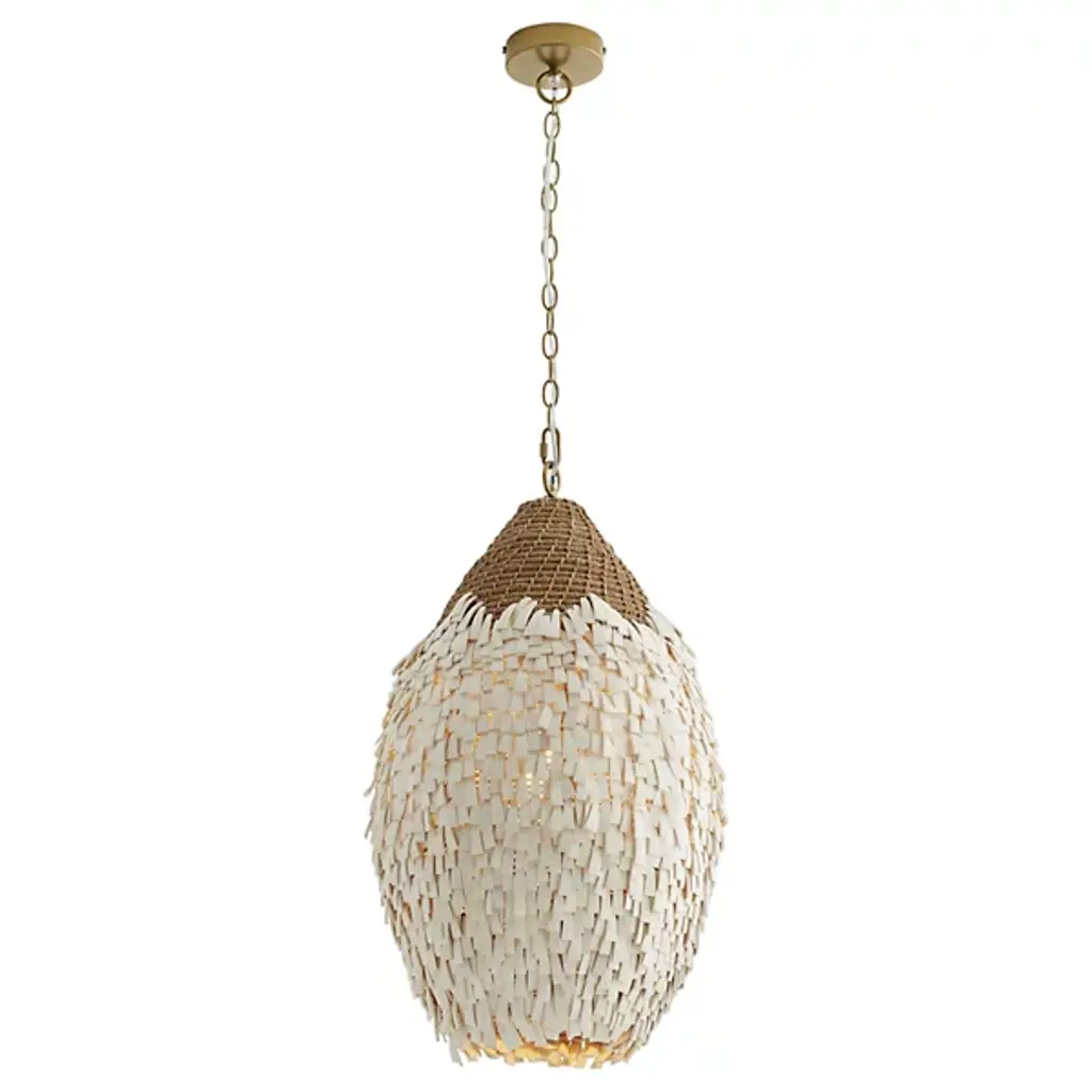 Curiously configured with a knack for celebrating texture. The Orla Pendant is presented by Arteriors, a brand that strives to responsibly curate items with a harmonious flow between interior design and fine art. Composed of coconut shell and woven rattan, the pendant drops from minimal chain link and a canopy on the ceiling. It has a bohemian beach vibe going for it but could easily be placed in a different environment for a completely different feel. Regardless, place an Orla anywhere you like and enjoy the elevated illumination experience.