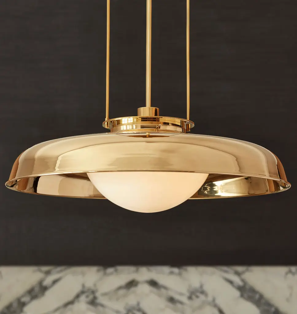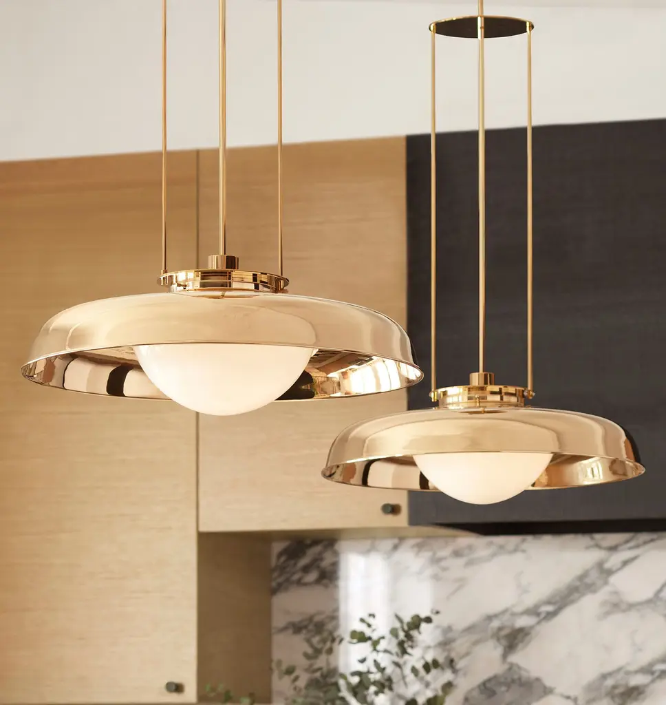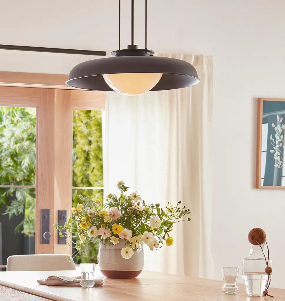 Ormandy channels Mid-Century Danish design, featuring a layered silhouette that showcases an inner shade nested within an oversized form.