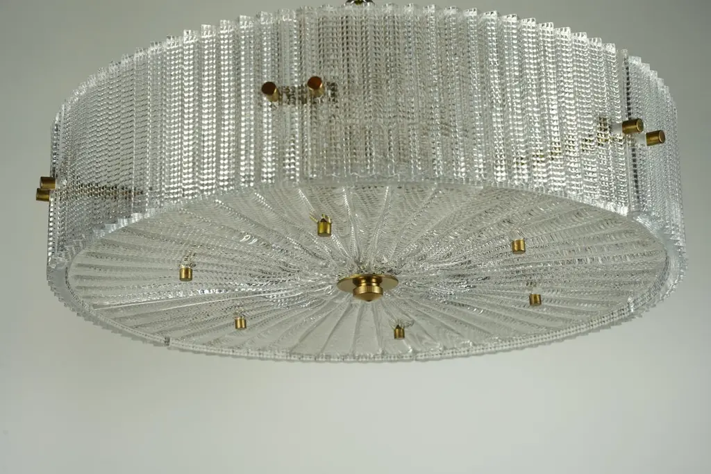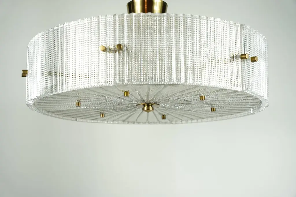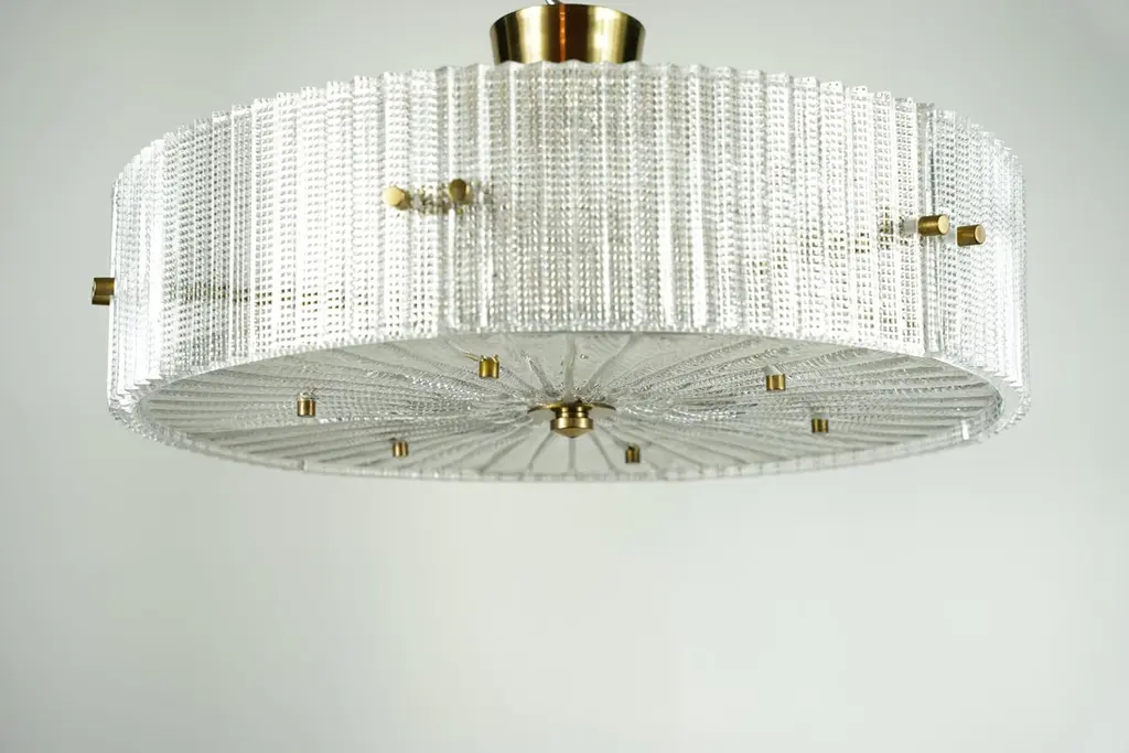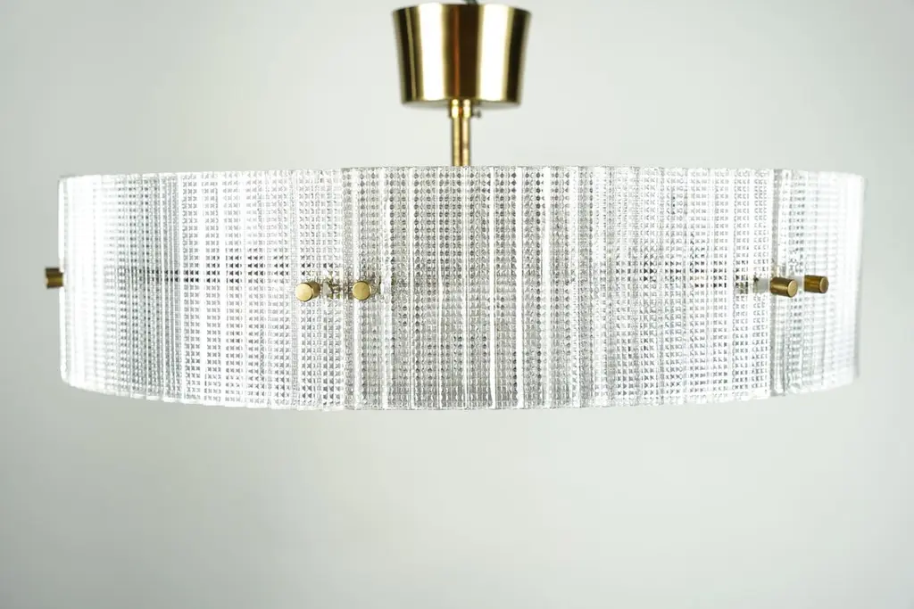 Orrefors Drum Shaped Pendant By Carl Fagerlund Glass And Brass, Sweden, 1960