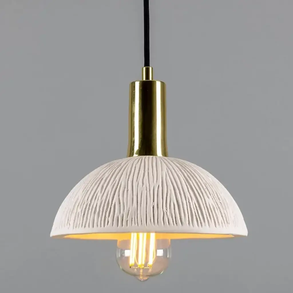 The Osier Mini Pendant from Mullan Lighting uses an elegantly simple structure to put a unique ceramic shade on full display. Made in Ireland, each fixture features subtly different textures, allowing it to work well on its own or as a combination of several similar fixtures. A brass housing secures a socket inside the tall dome-shaped ceramic shade, combining refined details with raw texture for a standout addition to any space.