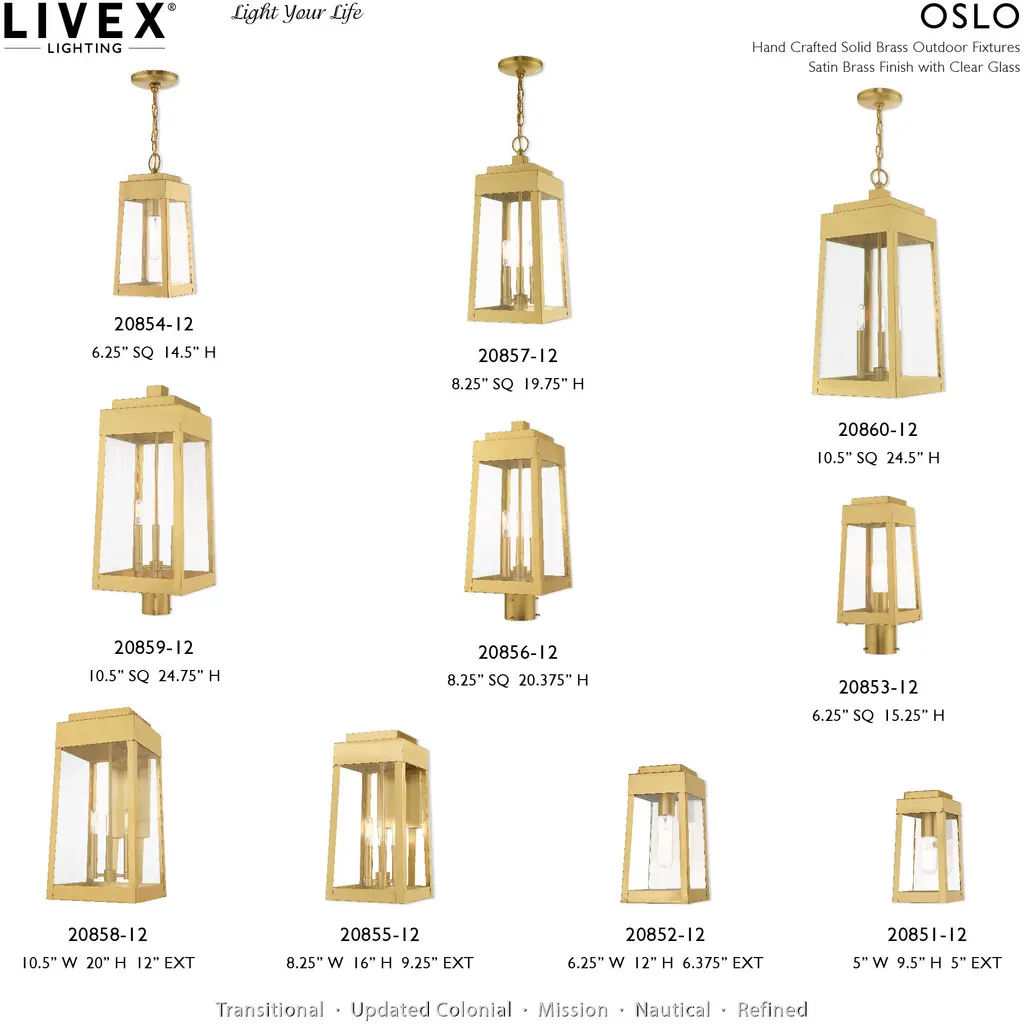 Oslo 1 Light 6 Inch Satin Brass Outdoor Pendant Lantern