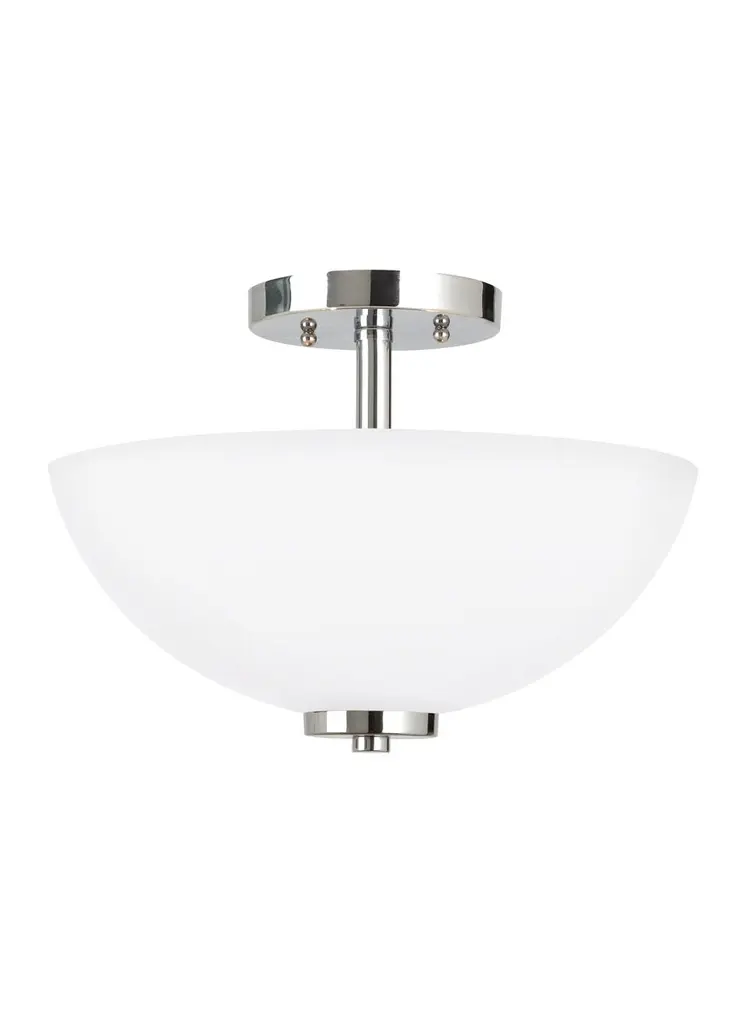 The Oslo two light semi flush fixture in chrome supplies ample lighting for your daily needs, while adding a layer of today's style to your home's d?cor. The Oslo lighting collection by is a sleek design, with smooth and clean lines. The Opal Etched glass adds to this collection's contemporary and minimalist character. Offered in Chrome, Brushed Nickel, Burnt Sienna and textured Blacksmith finishes, the collection includes nine-, five-, and three-light chandeliers, pendants in four sizes, both flush and semi-flush ceiling fixtures, as well as one-, two-, three- and four-light wall/bath fixtures. Both incandescent lamping and ENERGY STAR-qualified LED lamping are available. All fixtures are California Title 24 compliant.
