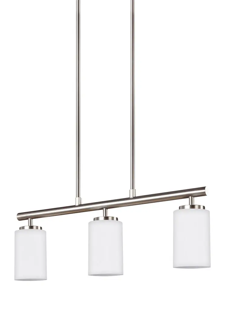 The Oslo three light linear chandelier in brushed nickel provides abundant light to your home, while adding style and interest. The Oslo lighting collection by is a sleek design, with smooth and clean lines. The Opal Etched glass adds to this collection's contemporary and minimalist character. Offered in Chrome, Brushed Nickel, Burnt Sienna and textured Blacksmith finishes, the collection includes nine-, five-, and three-light chandeliers, pendants in four sizes, both flush and semi-flush ceiling fixtures, as well as one-, two-, three- and four-light wall/bath fixtures. Both incandescent lamping and ENERGY STAR-qualified LED lamping are available. All fixtures are California Title 24 compliant.