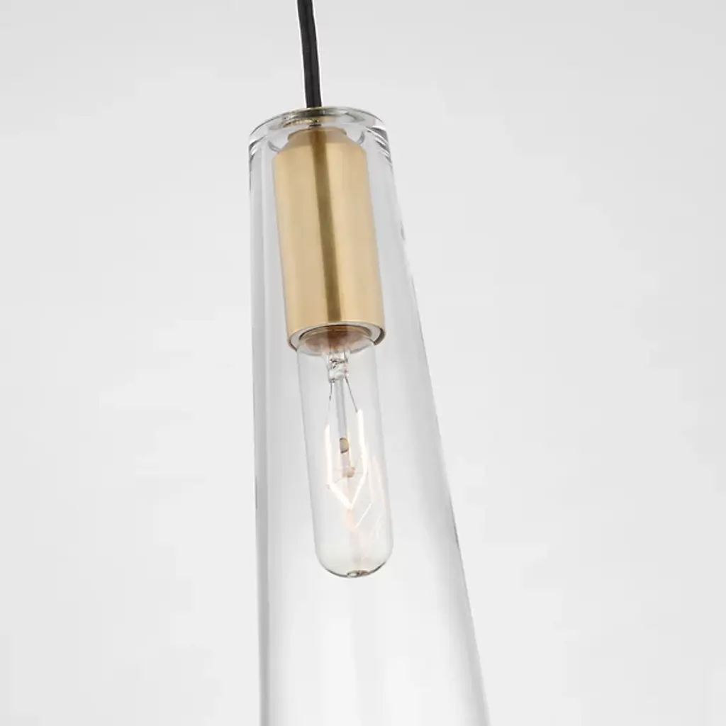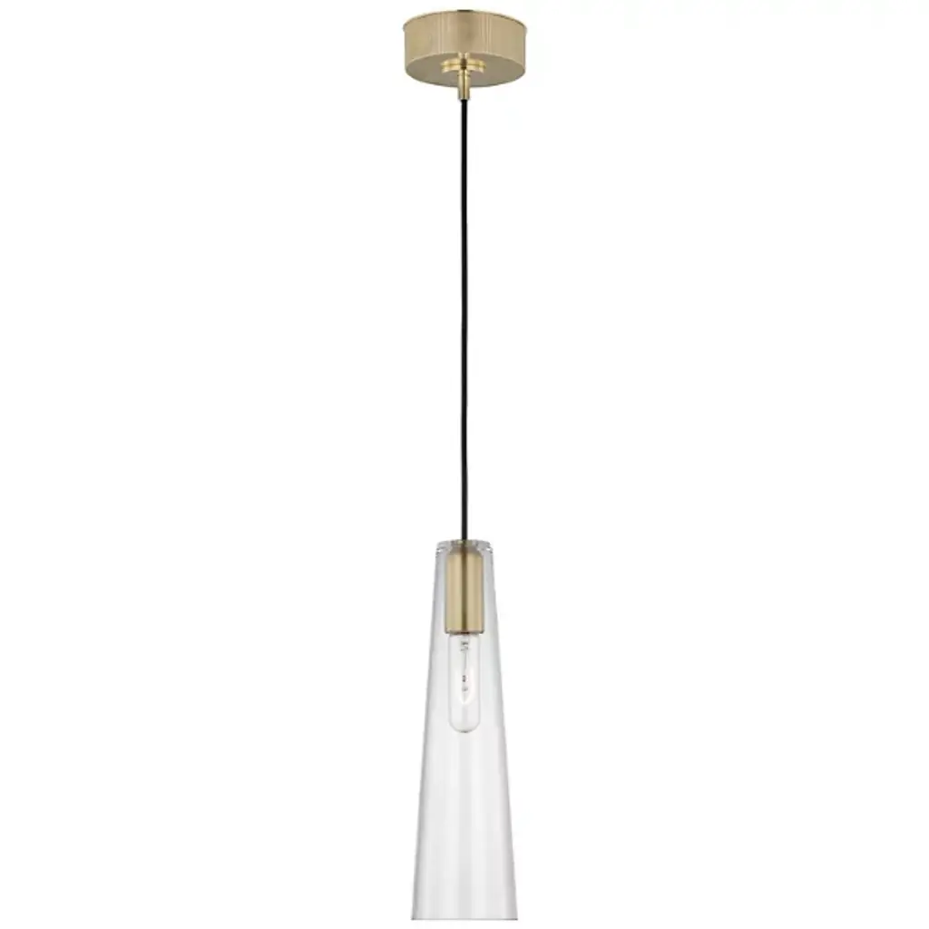 The Osvaldo Mini Pendant from Visual Comfort Signature distills Ray Booth's design into a concentrated form. The singular glass cone creates a clear column of light, while brass fittings add subtle metallic touches to the composition. This pendant works beautifully in powder rooms, clustered above breakfast nooks, or lined along hallways, where its clean lines and transparent shade maintain visual flow while providing focused illumination.