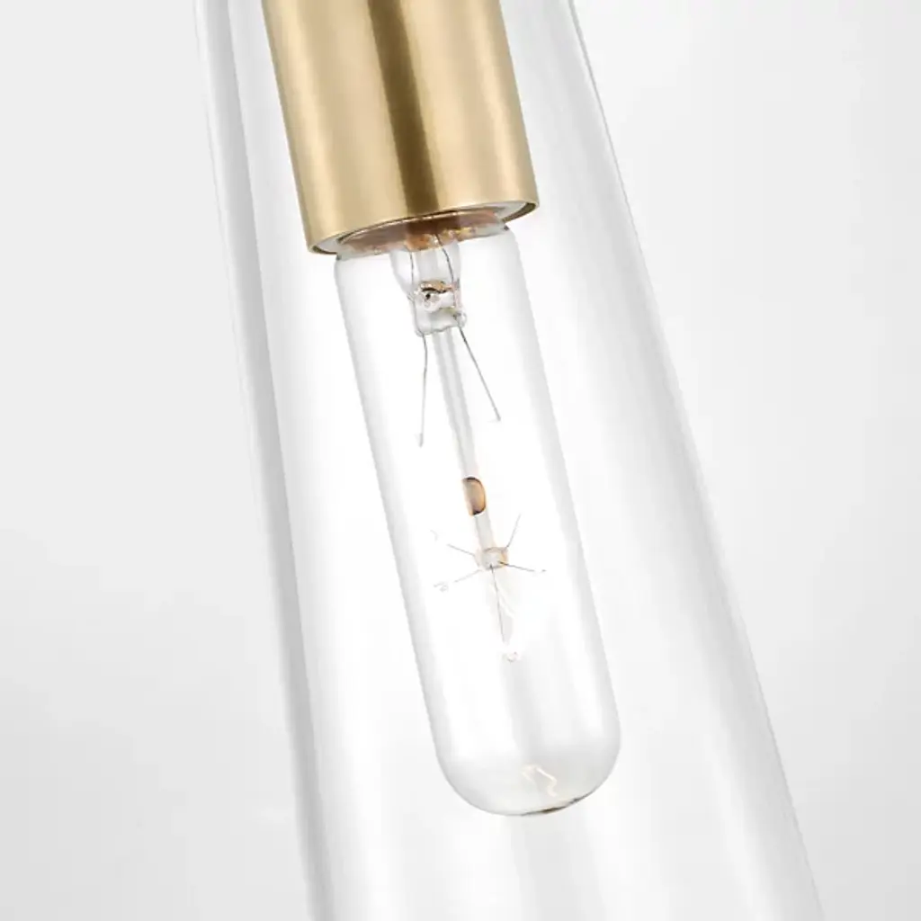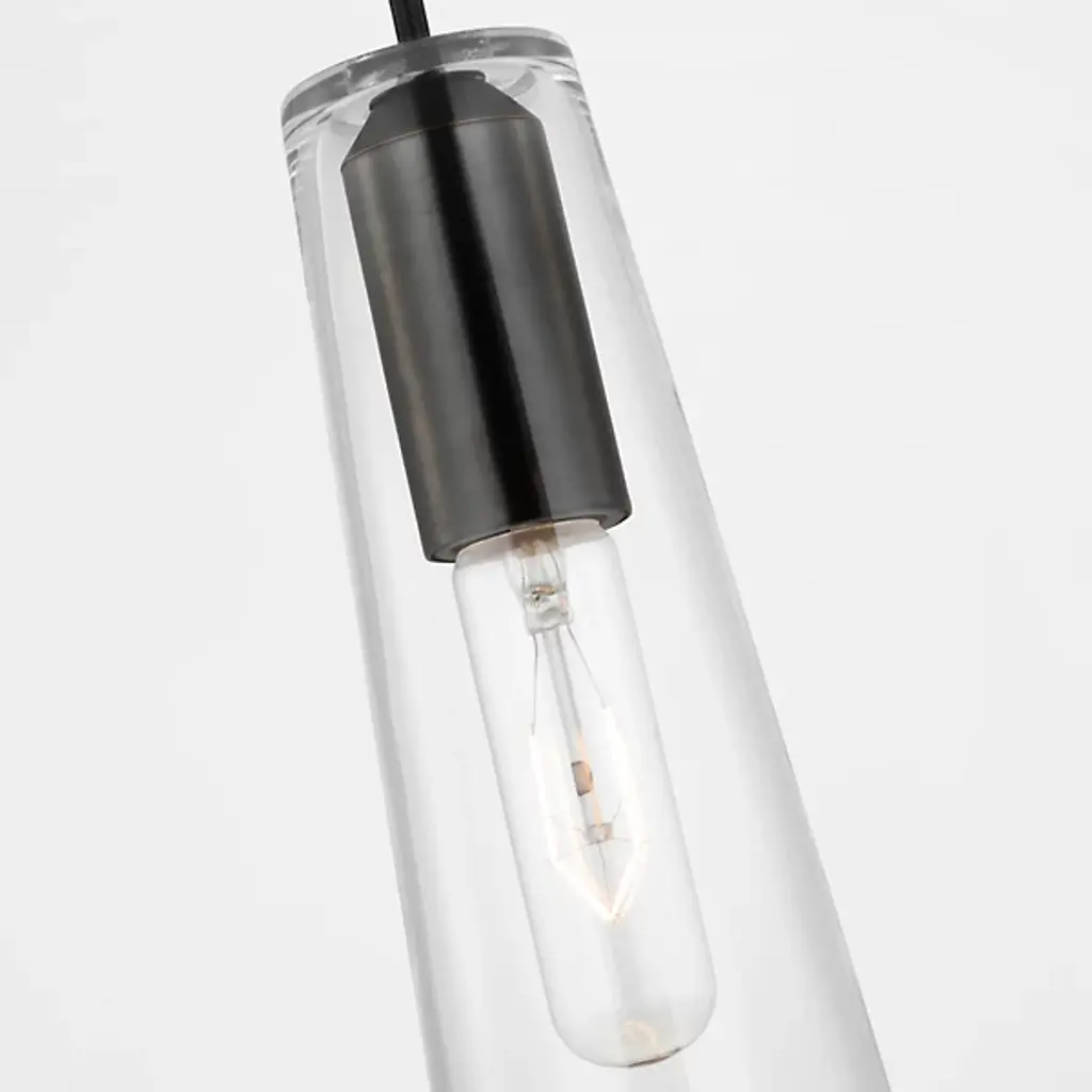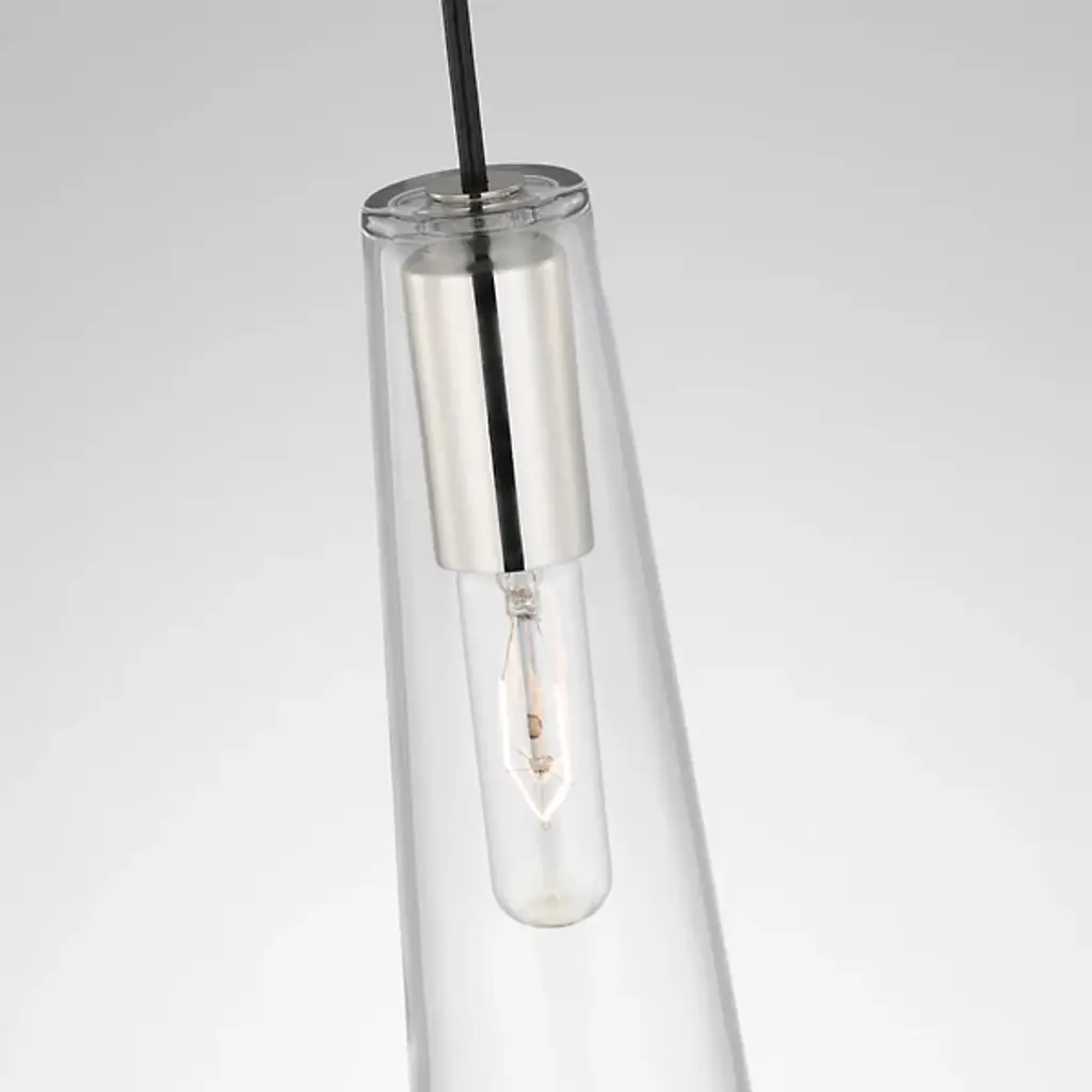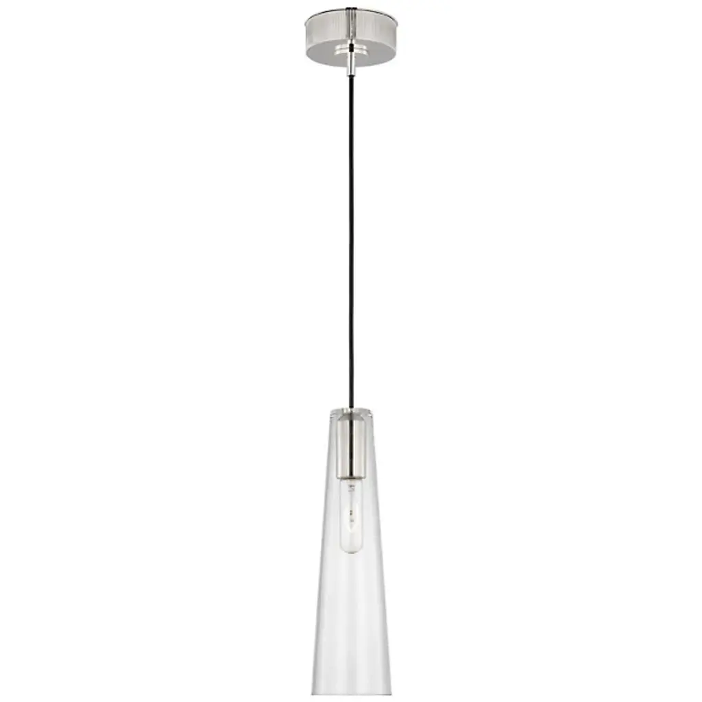 The Osvaldo Mini Pendant from Visual Comfort Signature distills Ray Booth's design into a concentrated form. The singular glass cone creates a clear column of light, while brass fittings add subtle metallic touches to the composition. This pendant works beautifully in powder rooms, clustered above breakfast nooks, or lined along hallways, where its clean lines and transparent shade maintain visual flow while providing focused illumination.