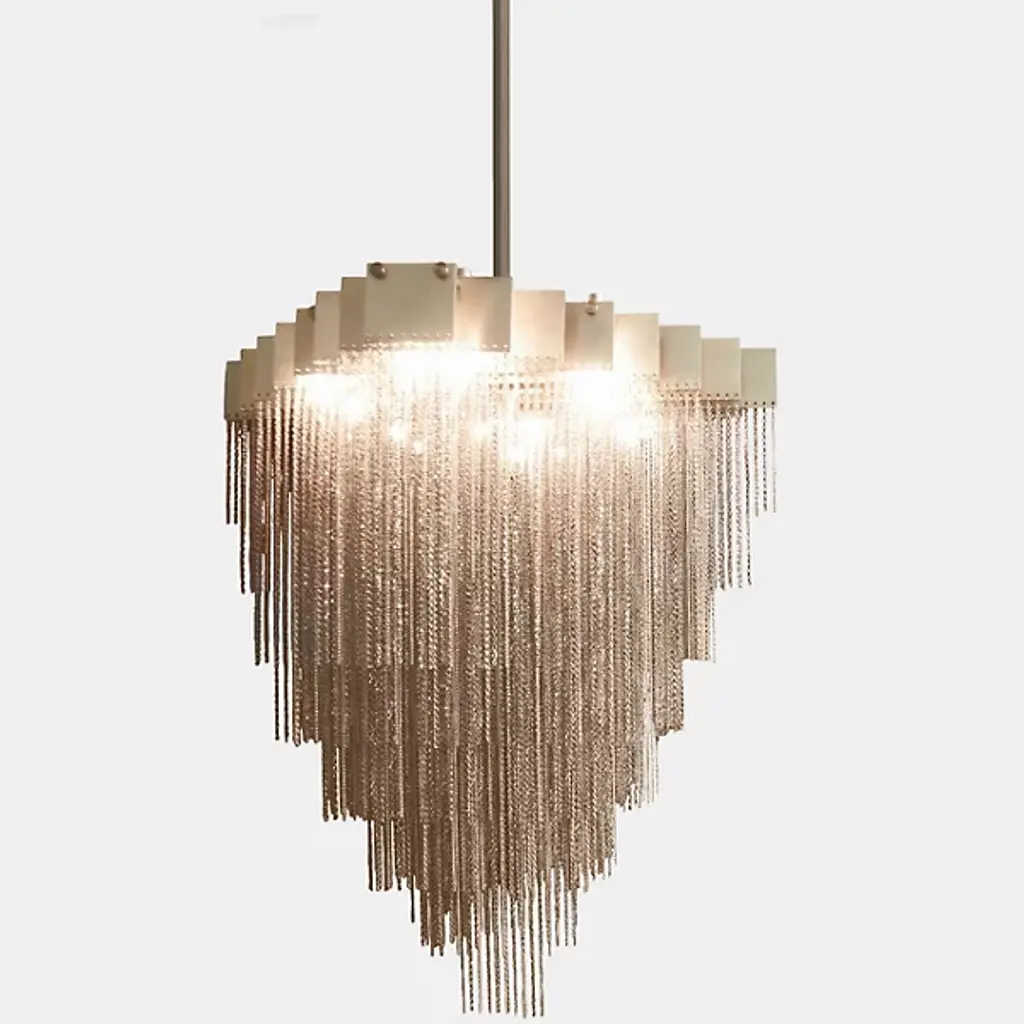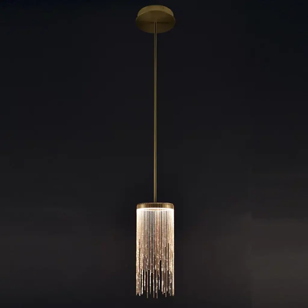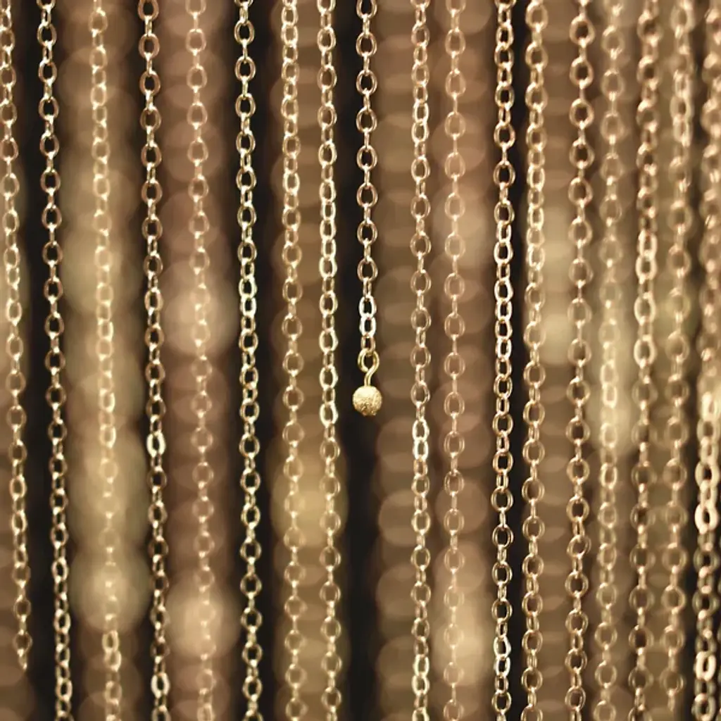 The Otero XS LED Mini Pendant from Larose Guyon provides a graceful and elegant appeal to inside ceilings, taking pride of place as a gorgeous, angelic presence of famed Parisian beauty Caroline Otéro, called La Belle Otéro, known for her exotic and striking style and love of Jewelry. Evoking the famous creations of jewelers Cartier and Boucheron, its expressive beauty transforms its surroundings, suspending simply from a stepped circle canopy via a slim central stem, placing LED lamping inside two copper rings as a light housing, accompanied by a daring drapery of fine chains that drop at different lengths, forming a curtain around it that glows and glitters with warm downlight.
