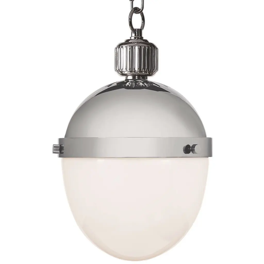 Our Otis Pendant Small blends 20th-century style with modern materials for a timeless lookâin a compact size that integrates with any space or style. Classic milk glass gives a soft, diffuse light that is gentle on your eyes. It's the perfect way to add a warm glow over a breakfast nook or kitchen island. Clean polished nickel pairs beautifully with white marble and surfaces with cool undertones.