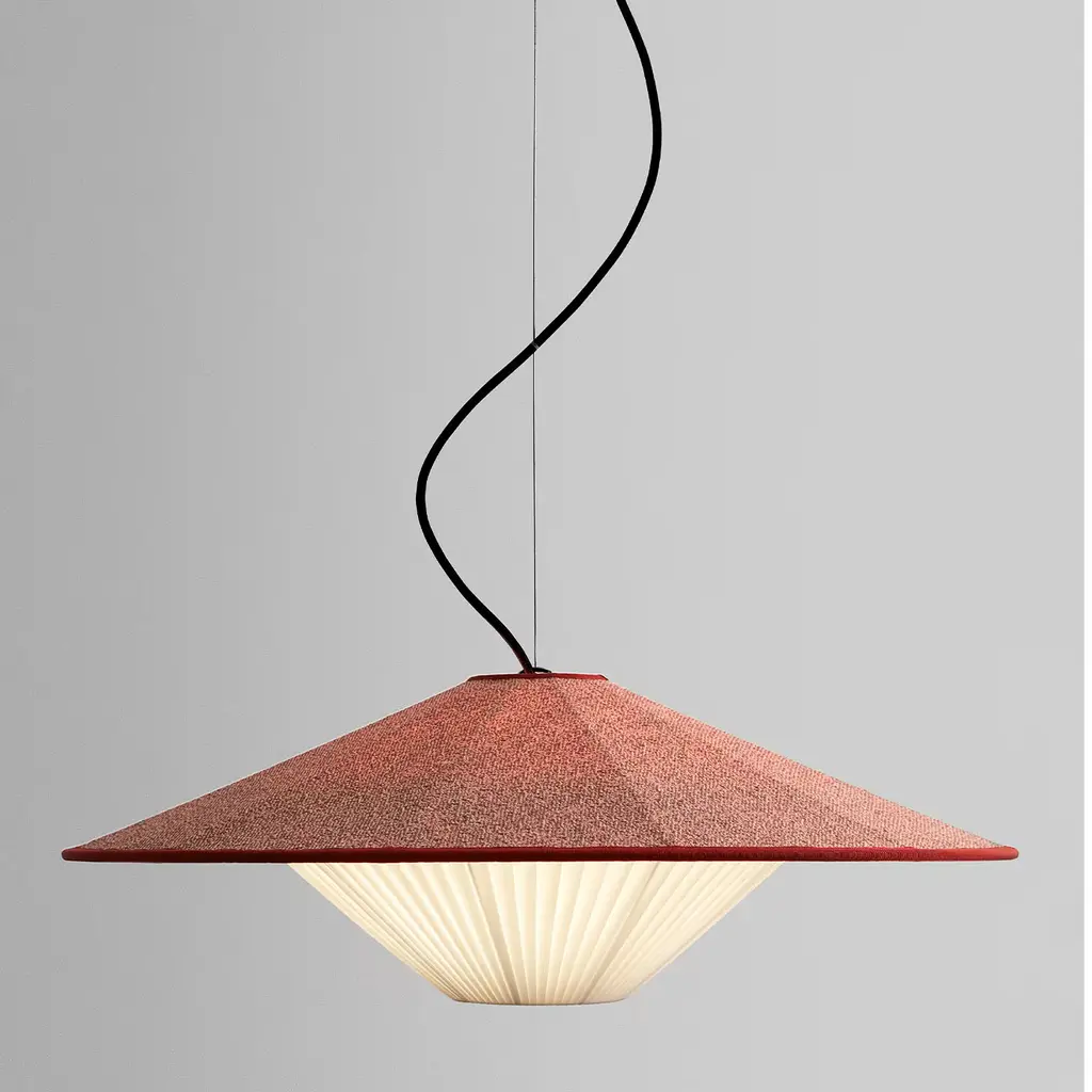Otto lamp series design echoes the distant sci-fi imaginary of the late 60s and early 70s. It’s inspired by the illustrations of the UFOs era with the very distant universes they used to recall. The lamps are completely hand-sewn. It features an upper lampshade in Rubelli fabric and a lower lampshade in pleated pongé bends. It requires 1 x E27 bulb or E26 bulb (not included) and has a black silk-like fabric flex cable, 3 meters long. It is compatible with dimmable systems.