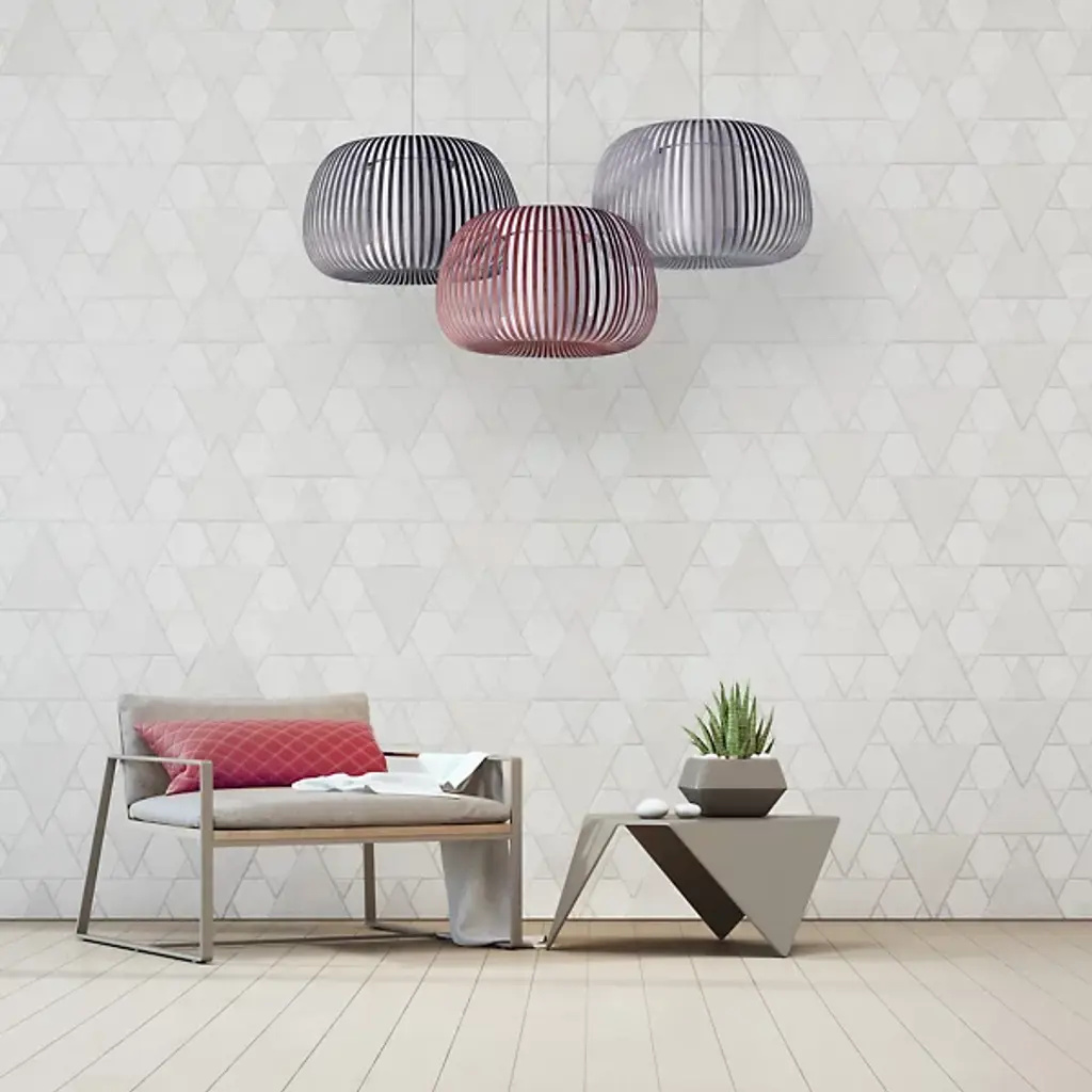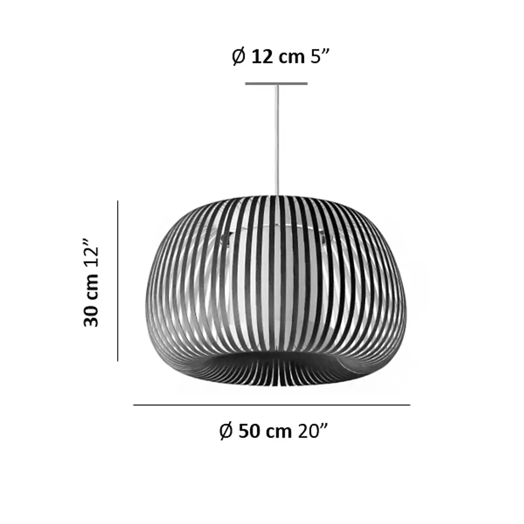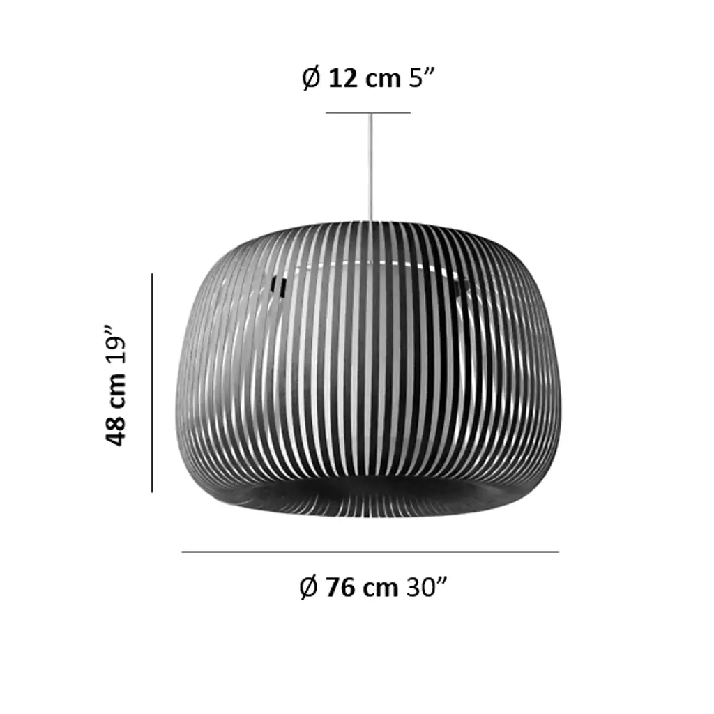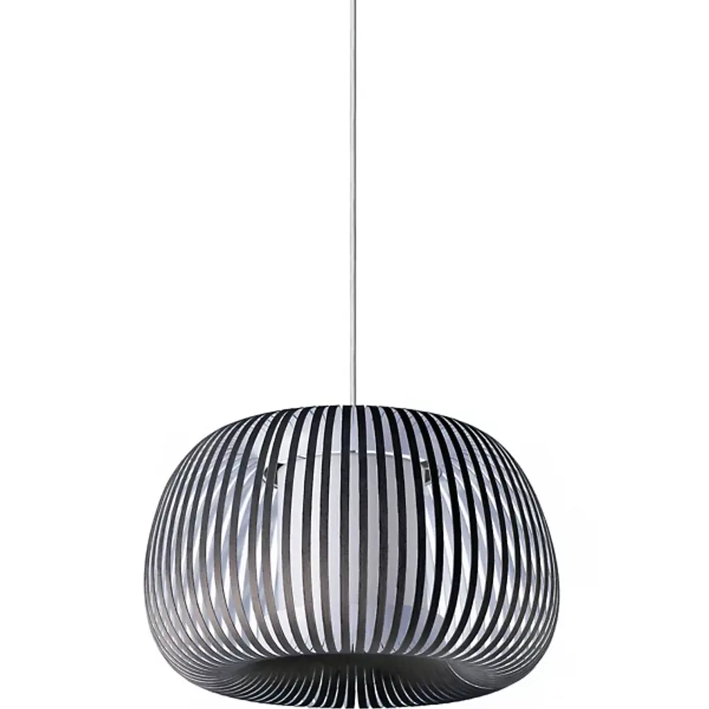 The Ova Pendant from Uplight Group Essentials sends out an easy-going light, one mellowed out by the snazzy stripes of its handcrafted form. Designer Uplight Group's goal is to create accessible, accurate, and reliable pieces. This pendant proves accessible through its familiar round silhouette, one referencing Mid-century lighting classics. Accuracy is key in cutting the strips of French velvet material that make up the hand-arranged shade. These strips circle evenly for an airy, graphic visual that subtly reveals the internal cylindrical diffuser. The light exits vertically through the diffuser and radiates past the fabric strips as a cozy, atmospheric light.