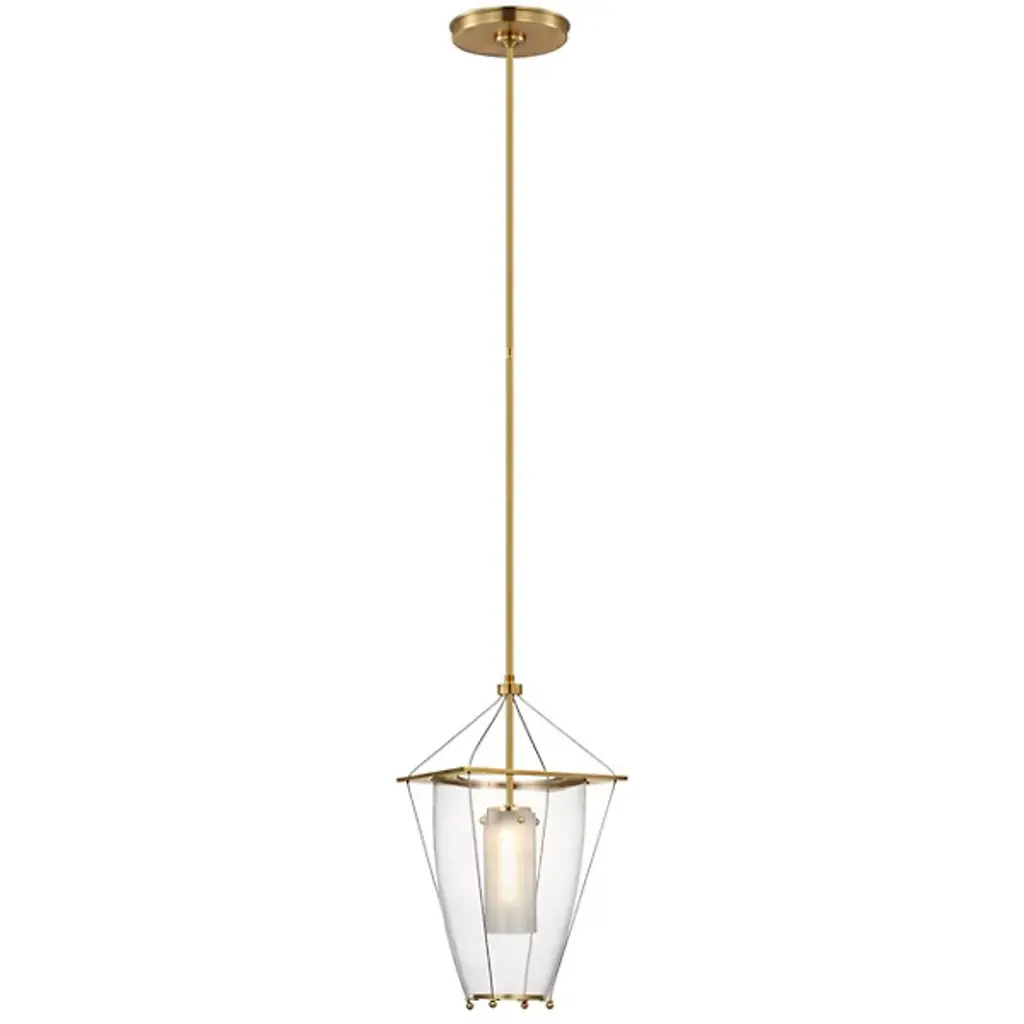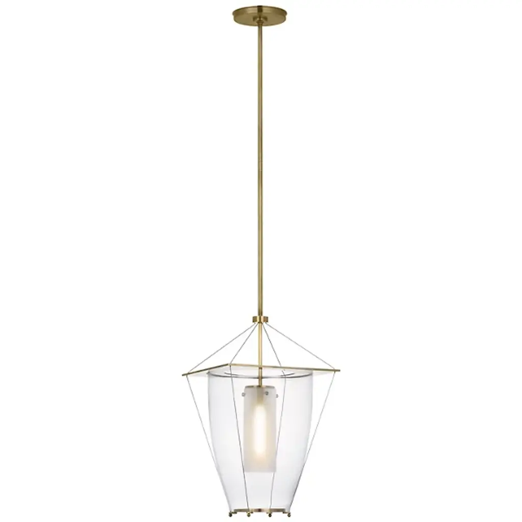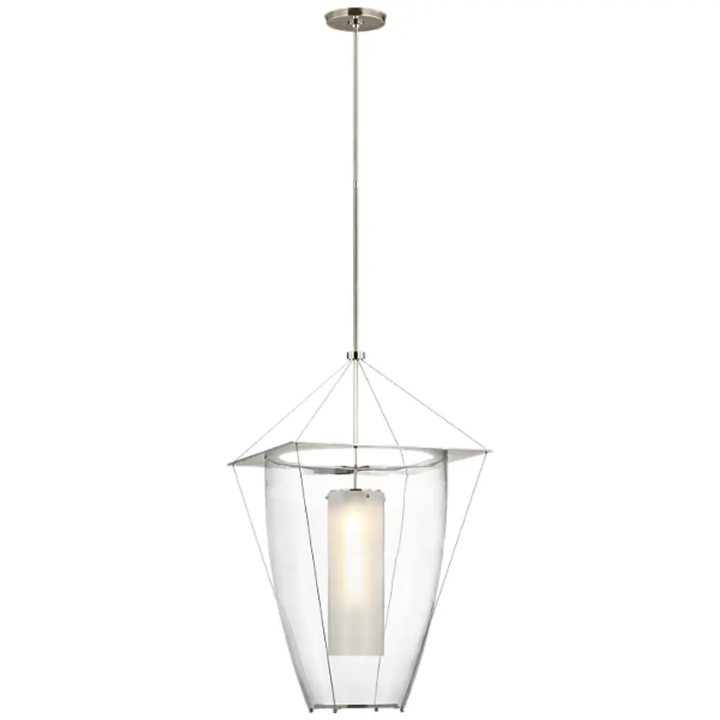 The Ovalle Pendant from Visual Comfort Signature offers a straightforward look with a bit of understated flair thrown in, enabling it to complement a broad array of established motifs. Designed by Ray Booth, the fixture hangs from a slender metal rod, and the glass shade is surrounded by supporting wires, giving it an intriguing and different appearance. The pendant is ideally suited for installation as a singular fixture or in multiples, effortlessly enhancing the space above a dining table or kitchen island while also creating an elegant ambiance when positioned next to a bedside or in a bath area.