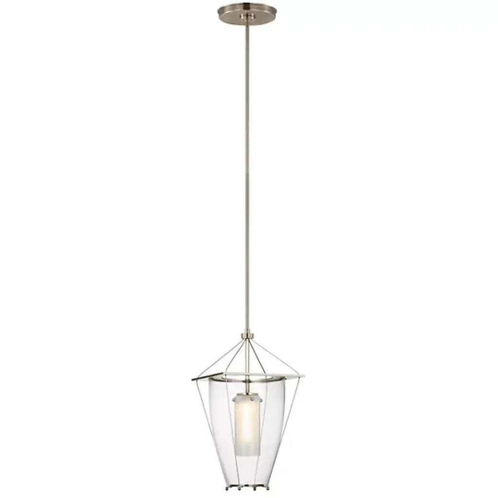 The Ovalle Pendant from Visual Comfort Signature offers a straightforward look with a bit of understated flair thrown in, enabling it to complement a broad array of established motifs. Designed by Ray Booth, the fixture hangs from a slender metal rod, and the glass shade is surrounded by supporting wires, giving it an intriguing and different appearance. The pendant is ideally suited for installation as a singular fixture or in multiples, effortlessly enhancing the space above a dining table or kitchen island while also creating an elegant ambiance when positioned next to a bedside or in a bath area.
