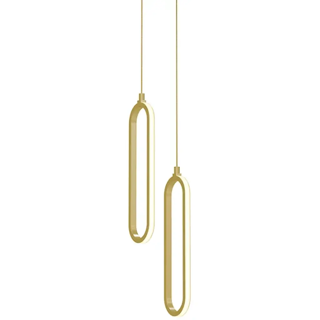 The Ovalo Chain Cluster LED Pendant by Boyd Lighting has an elegant and dynamic look. Designed by Doyle Crosby, this piece is composed of square tubes of hand-finished brass that have been shaped into rounded loops and connected together to create a series of linked chains that have a slender profile. Decorative and delicate in nature, these loops are paired with acrylic diffusers to bring a lovely layer of illumination to surroundings, offering spaces a bright and beautiful touch.