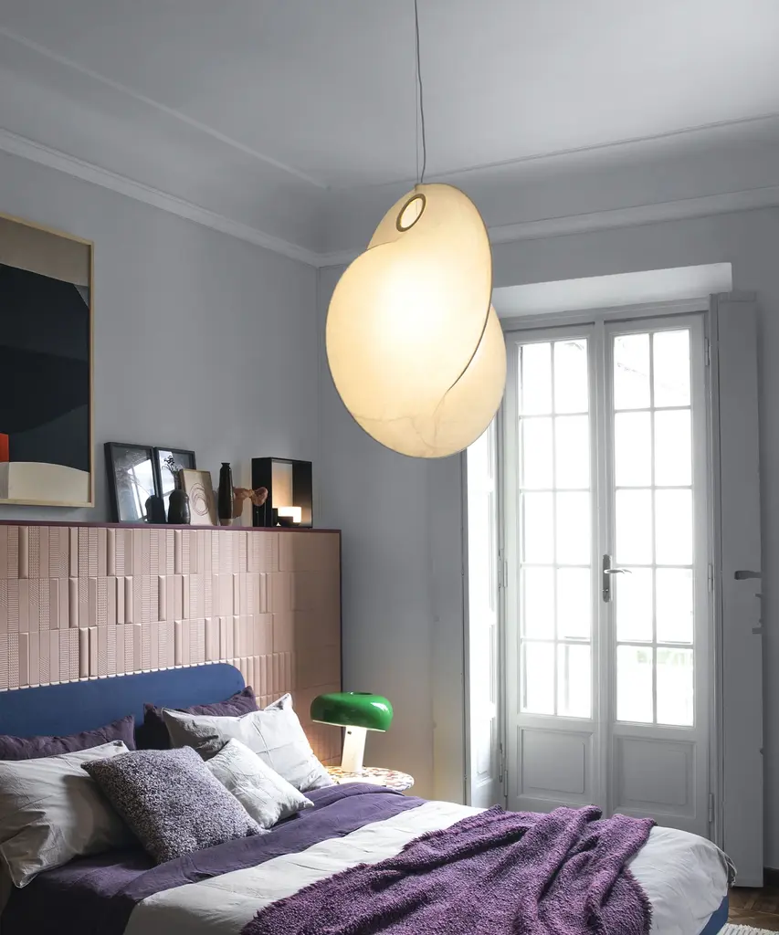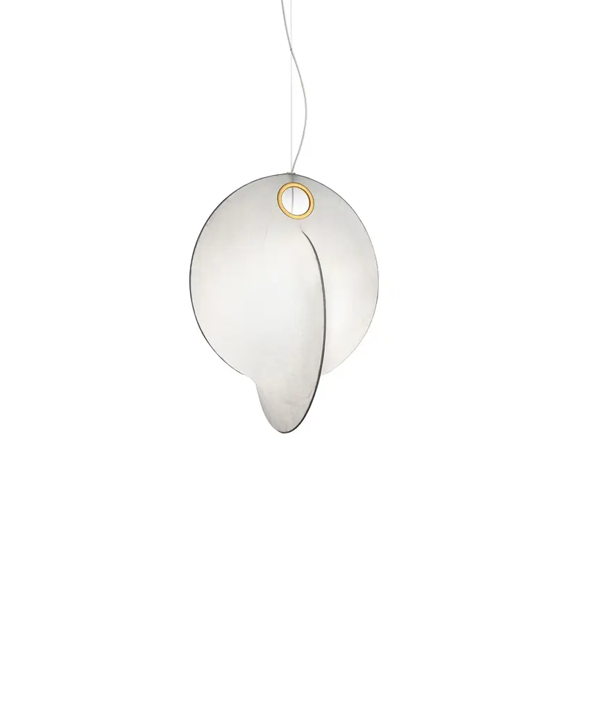 Overlap, a contemporary pendant lamp by FLOS, is Michael Anastassiades' tribute to the distinct cocoon wrapping technique that the Italian designer lighting company has won several hearts and awards with. This contemporary pendant light is made from steel and cocoon, while its internal structure comprises white powder painted steel. As the name suggests, Overlap is a modern pendant lamp by Michal Anastassiades that features two interlocking rings which intersect at right angles. This interior suspension lamp is among the latest additions to the designer's repertoire of modern pendant lighting. Providing soft, diffused light, Overlap manages to amaze and amuse in equal measure. You can see the rings try to push through the membrane, and yet, the space where the two interlock remains concealed – leaving it to your imagination! This authentic design is produced in Italy exclusively by Flos.