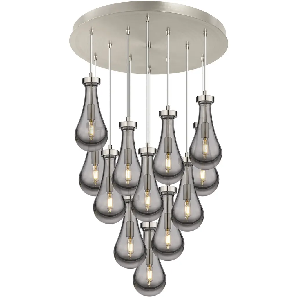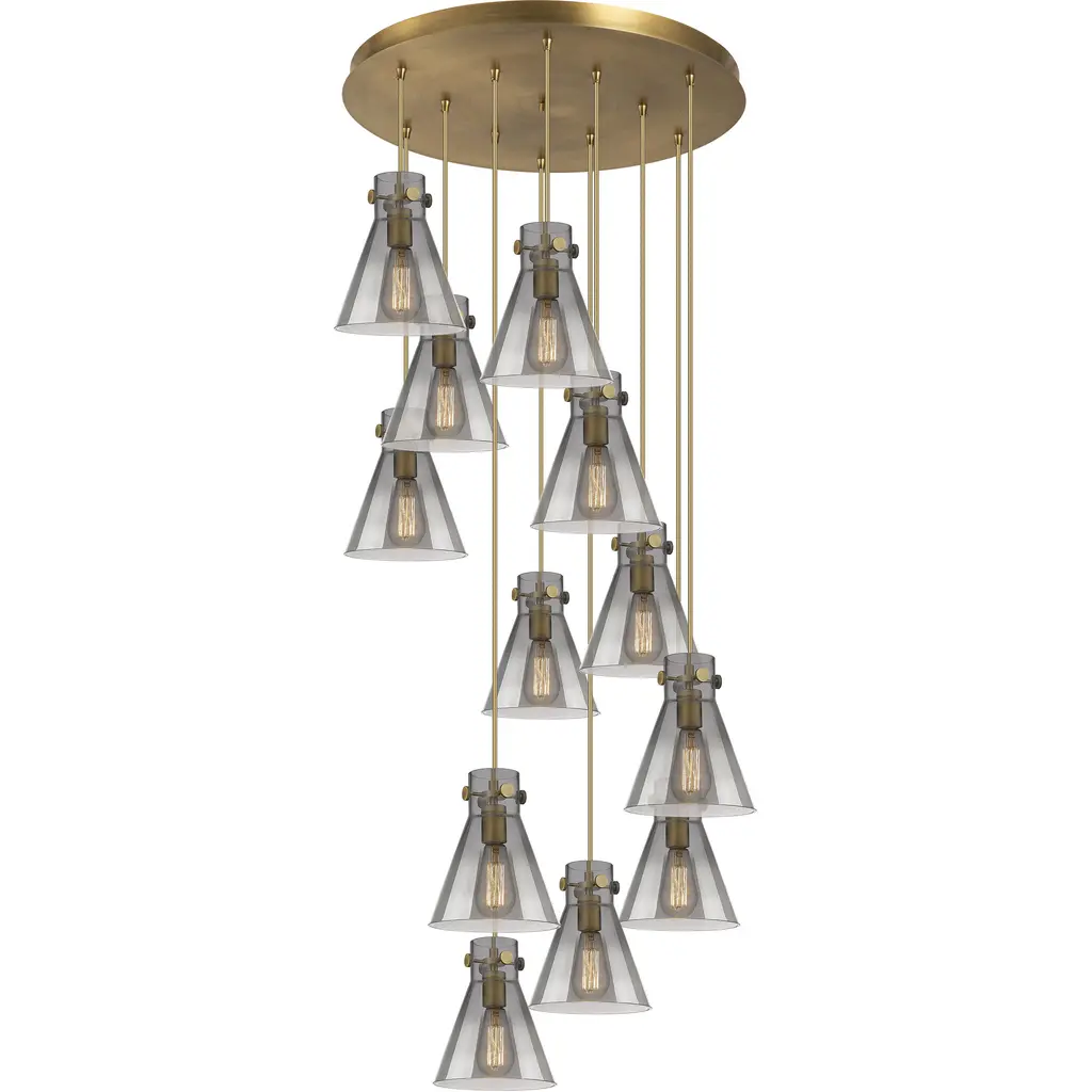 Owego 12 Light 24.38 Inch Brushed Brass Multi Pendant Ceiling Light In Light Smoke Glass