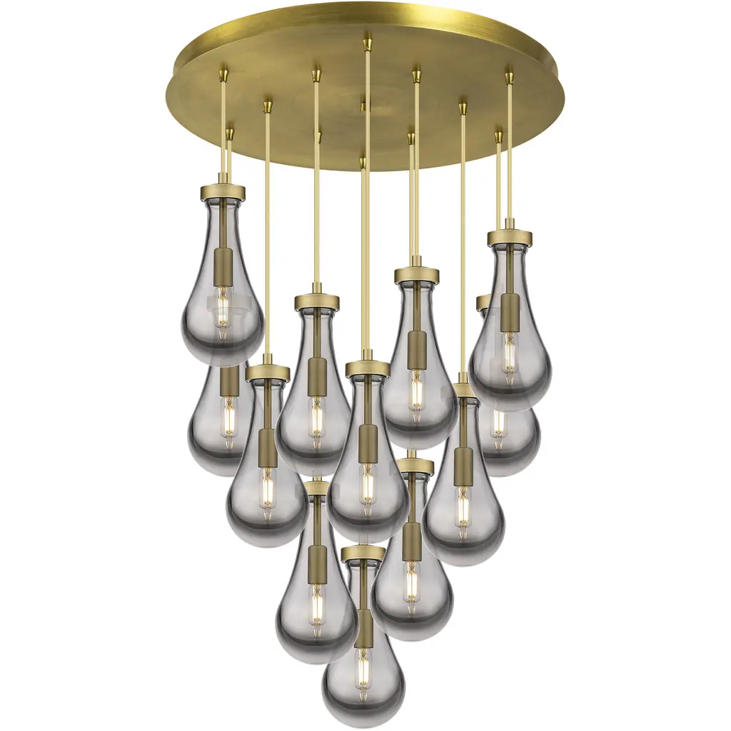 Owego 12 Light 24.38 Inch Polished Nickel Multi Pendant Ceiling Light In Light Smoke Glass