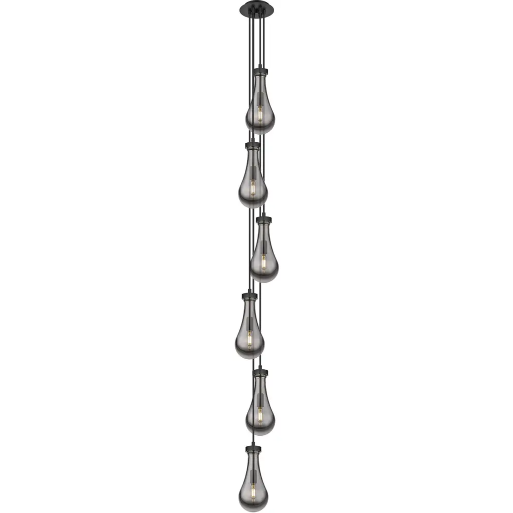 The organic teardrop shape of the Owego pendant is artfully hung from a tiered metal frame that is complemented by a single filament bulb. These pendants look great as individual fixtures but make a grand statement when paired with our multi-port hanging system as part of our custom cord program.