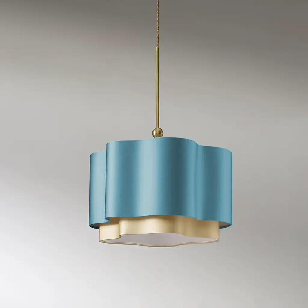 With its versatile design, the Oxalis pendant lamp effortlessly adapts to various interior settings, offering a captivating blend of form and function. Its fluid silhouette, crafted in satin sea and parchment, introduces a graceful interplay of light and shadow. Designed by Marta Laudani, the concentric shades create a subtle yet striking visual. Suspended by a 1.6m braided cord and anchored by a hand-forged brass stem, this customizable lamp is available in a range of color combinations.