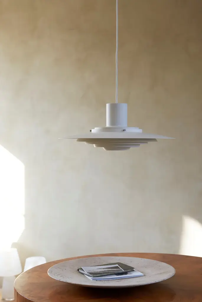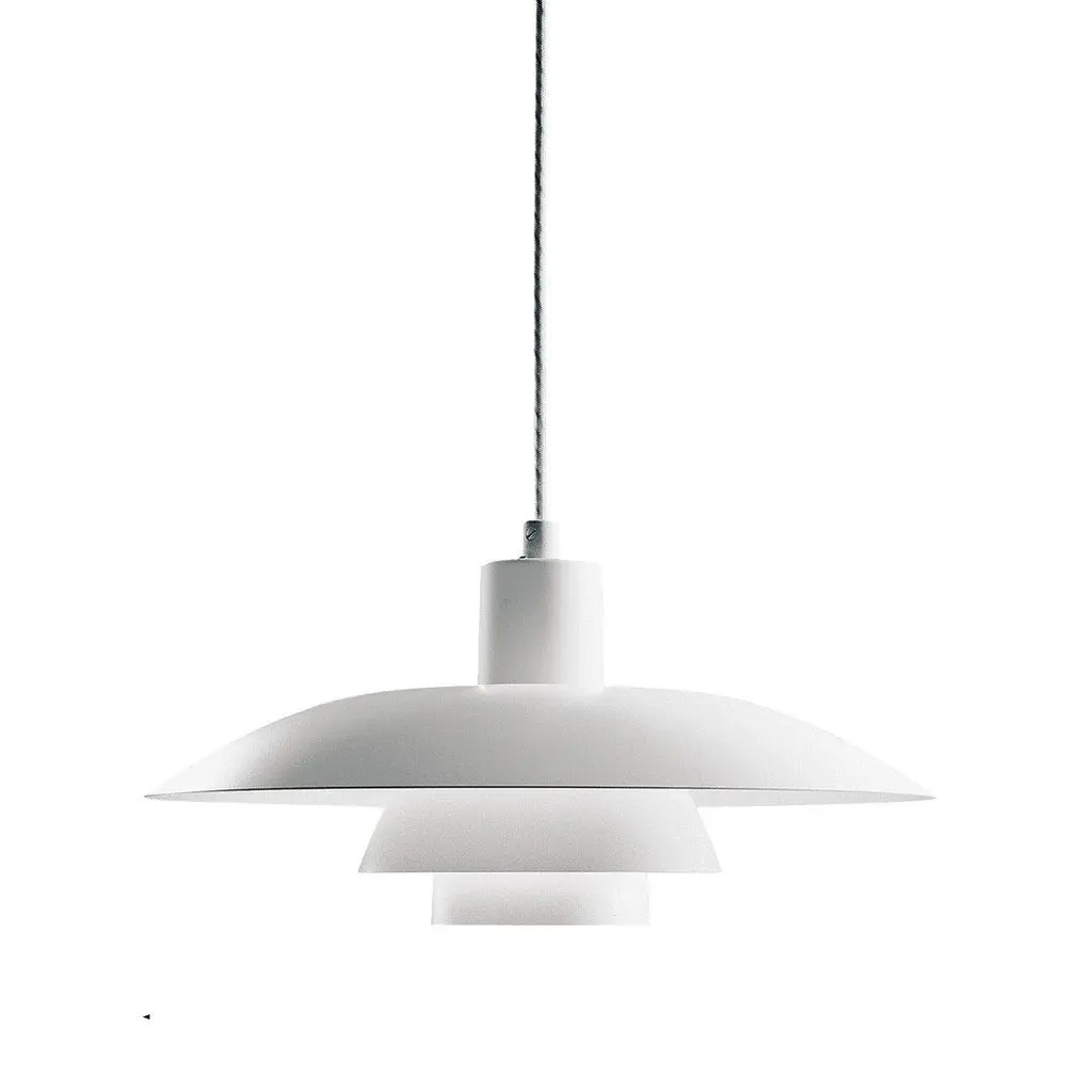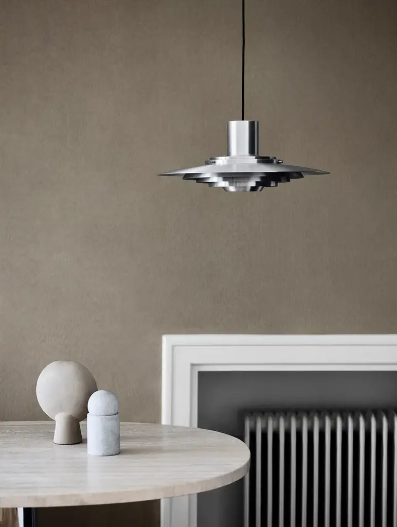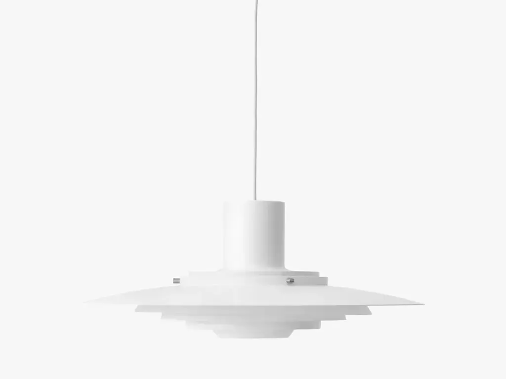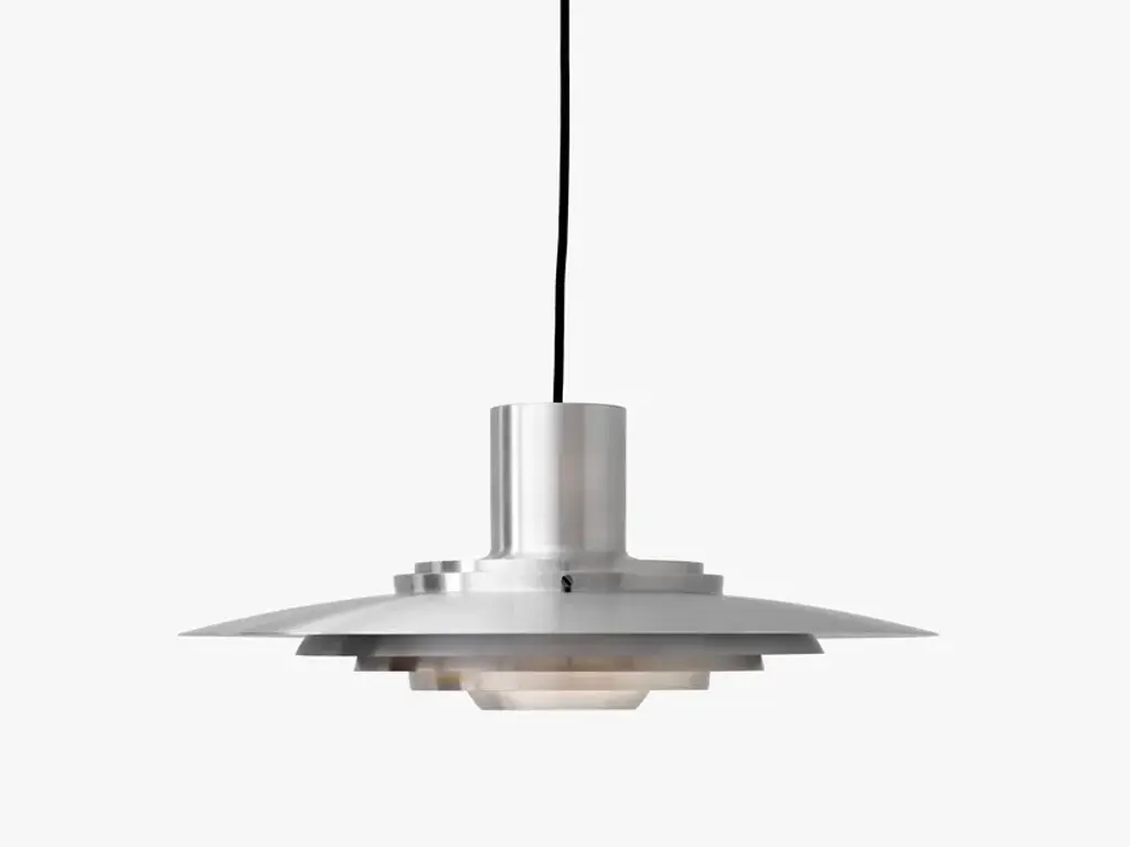 Jørgen Kastholm (1931-2007) and Preben Juhl Fabricius (1931-1984) were driven by a mutual mission to make form a pure derivative of function. Both were architects, graduating from the Danish School of Interior Design where they studied under Finn Juhl and subsequently with Arne Jacobsen. The P376 pendant lamp is a perfect example of Kastholm & Fabricius’ subtle architectural slant on design. Originally conceived in 1963, five concentric shades create gradations of curves towards the middle of the lamp to emit a soft, diffused light. The discrete placement of the shades and the silky aluminium finish culminate in a cohesive expression that’s both iconic and enthralling.Production processThe shades are made from hand spun aluminumEnvironmentIndoorMaterialLacquered metal & fabric cordColoursMatt white, AluminiumVoltage220-240V 50HZLight source & energy efficiency classE27 Max. 100W. The luminaire is compatible with bulbs of energy classes: A++ – EBulb is not includedCord length400cm / 236.2inCertificationsCE, IP20, Class IICleaning instructionsClean with soft dry cloth. Always switch off electricity supply before cleaning