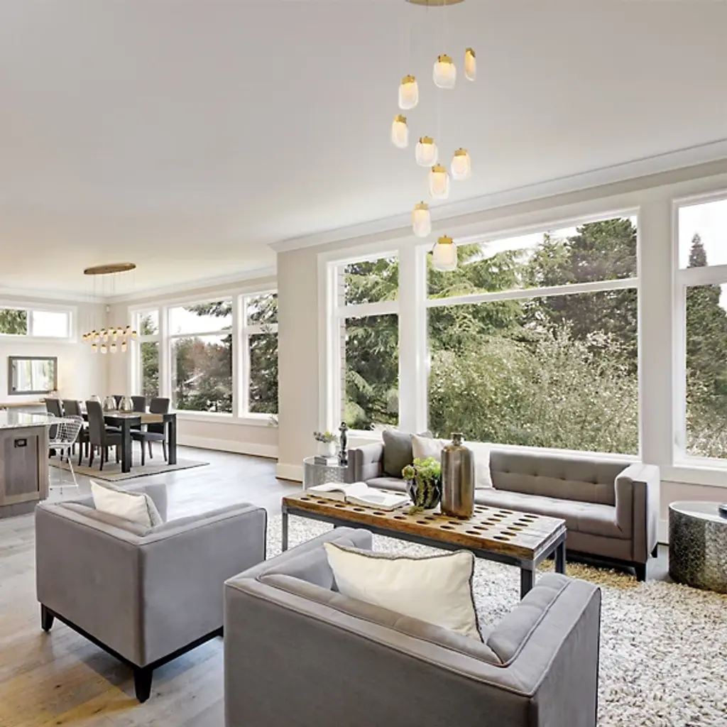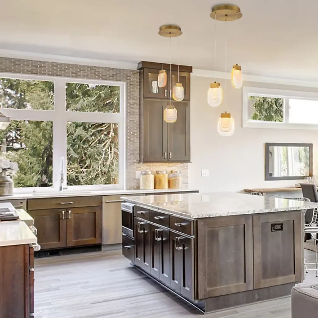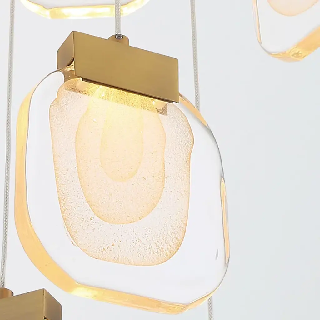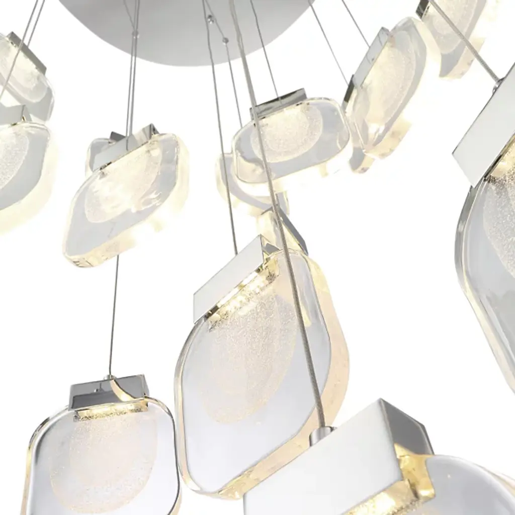 A stylized design with a sweet personality. The Paget Small LED Multi-Light Pendant from Eurofase hangs in the air like miniature works of art, each handcrafted and lit beautifully. It mounts neatly to your ceiling with a clean circular canopy. Ultra-fine cords make the hanging glass elements feel as if floating in the air. Inviting a closer inspection, the traditionally handmade glass shapes display an artful composition of rippling sugar glass. Light shining from the sleek metal bracket highlights the caramelized-like texture of the sugar glass, translating to a soft ambient glow.