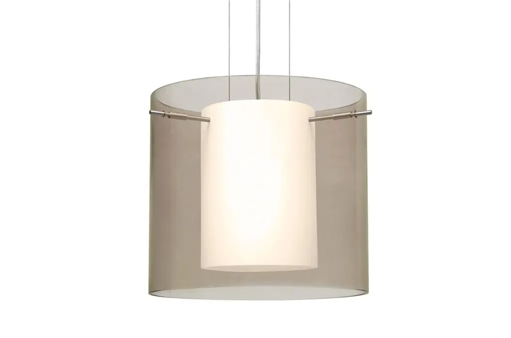 Pahu is a distinctive double-glass pendant, with an inner opal cylinder centered within a transparent outer glass. Our Trans-Smoke colored blown glass complements the soft white Opal cased glass, which can suit any classic or modern decor. Opal has a very tranquil glow that is pleasing in appearance, as the Trans-Smoke glass sparkles with the accents from that glow. The smooth satin finish on the opals outer layer is a result of an extensive etching process. This blown glass combination is handcrafted by a skilled artisan, utilizing century-old techniques passed down from generation to generation. The stem pendant fixture is equipped with an adjustable telescoping section, 4 connectable stem sections (3", 6", 12", and 18") and low Profile flat monopoint canopy. These stylish and functional luminaries are offered in a beautiful Black finish.