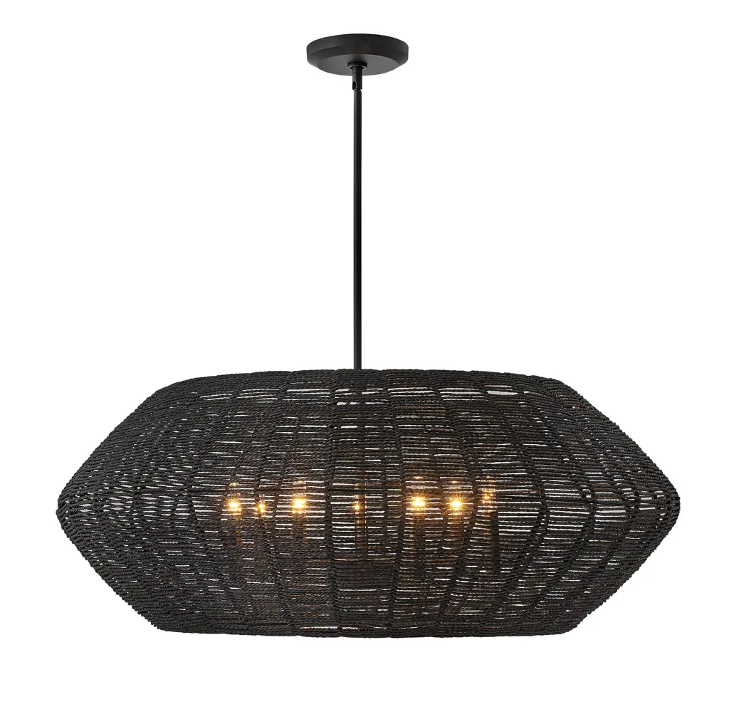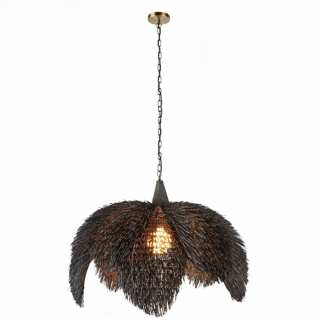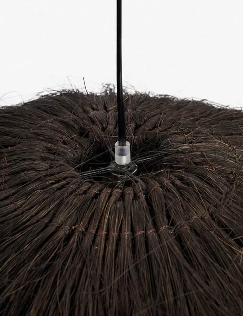 Organic textures are everything with this black pendant light, featuring a shade designed with palm tree fibers for a touch of natural movement. This ceiling light fixture will add an interesting focal point to your living room, dining room or entryway.