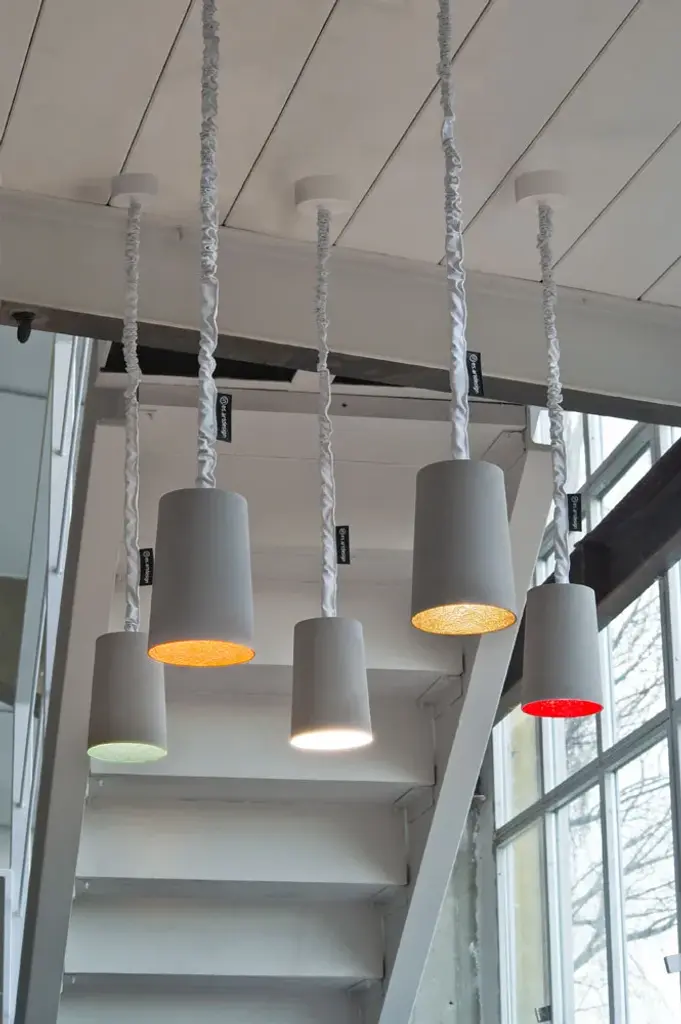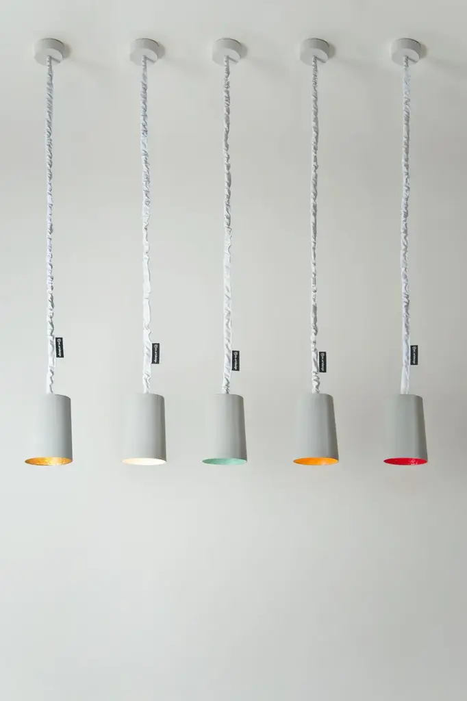 Matt is a true tribute to matter. The collection of lamps includes three lines, all entirely modeled by hand: Lavagna, Cemento and Nebula, made with profoundly diverse materials, yet similar in the capacity of sending out feelings of touch and atmosphere.Cemento (cement) is a lamp of great material impact, a bridge of dialogue between the external part, made of cement varnish, and the internal one, made of colored Nebulite®.