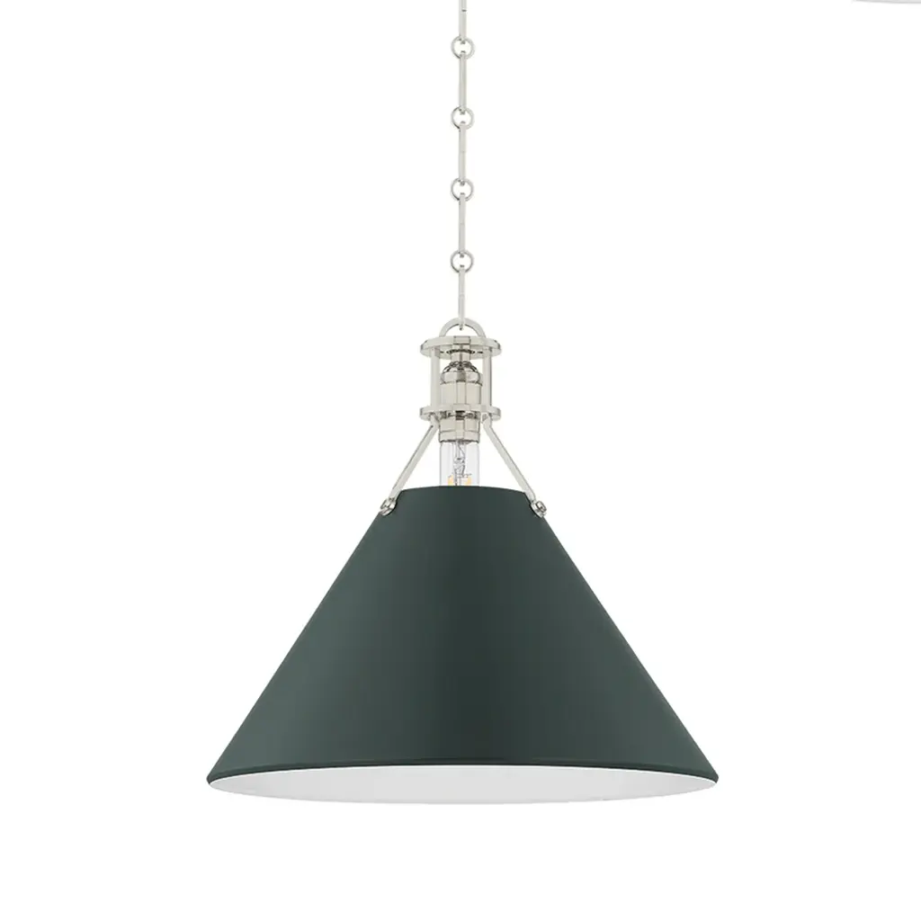 Painted No. 2 1 Light 21 Inch Polished Nickel/soft Studio Green Pendant Ceiling Light