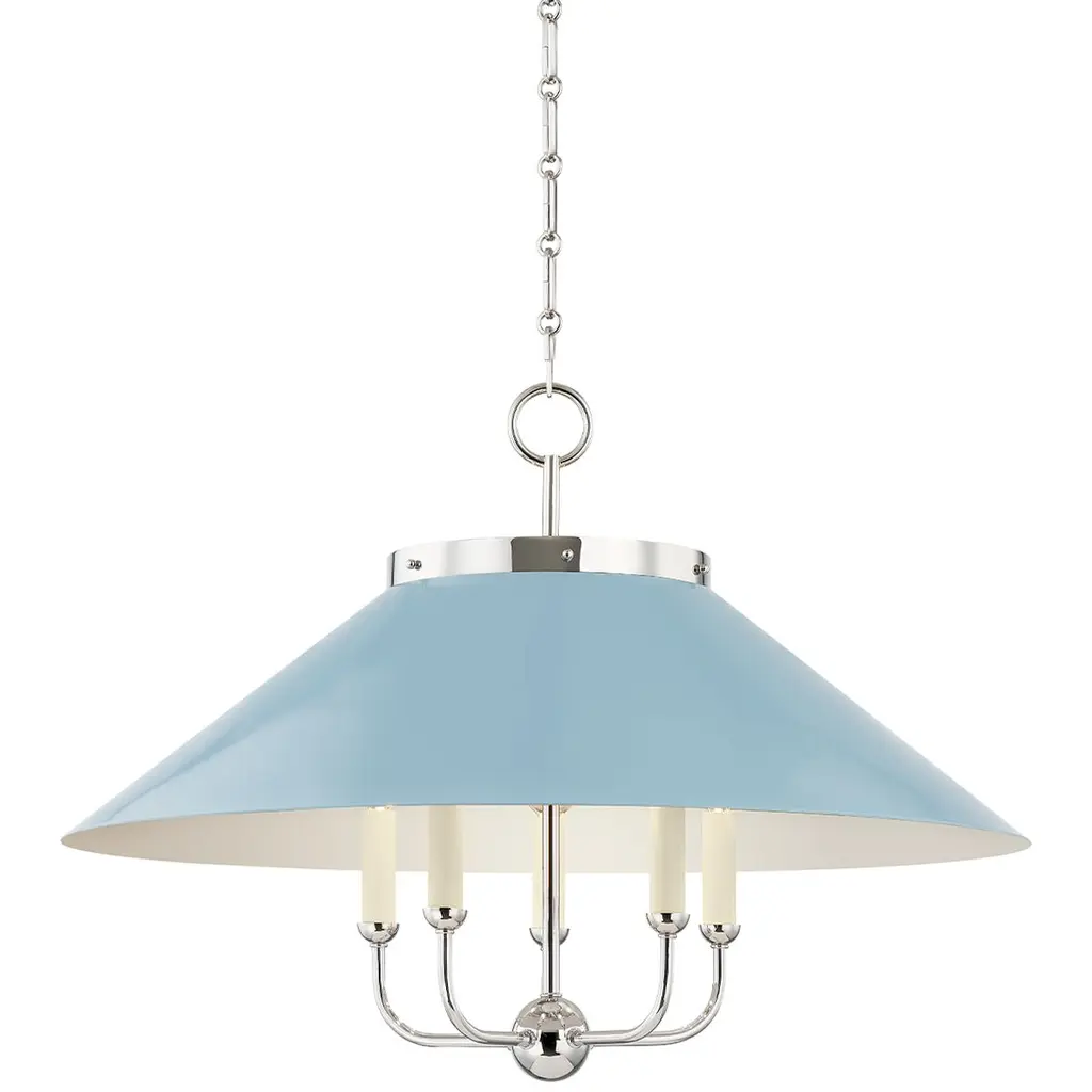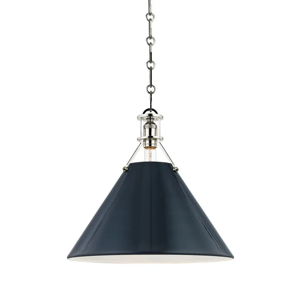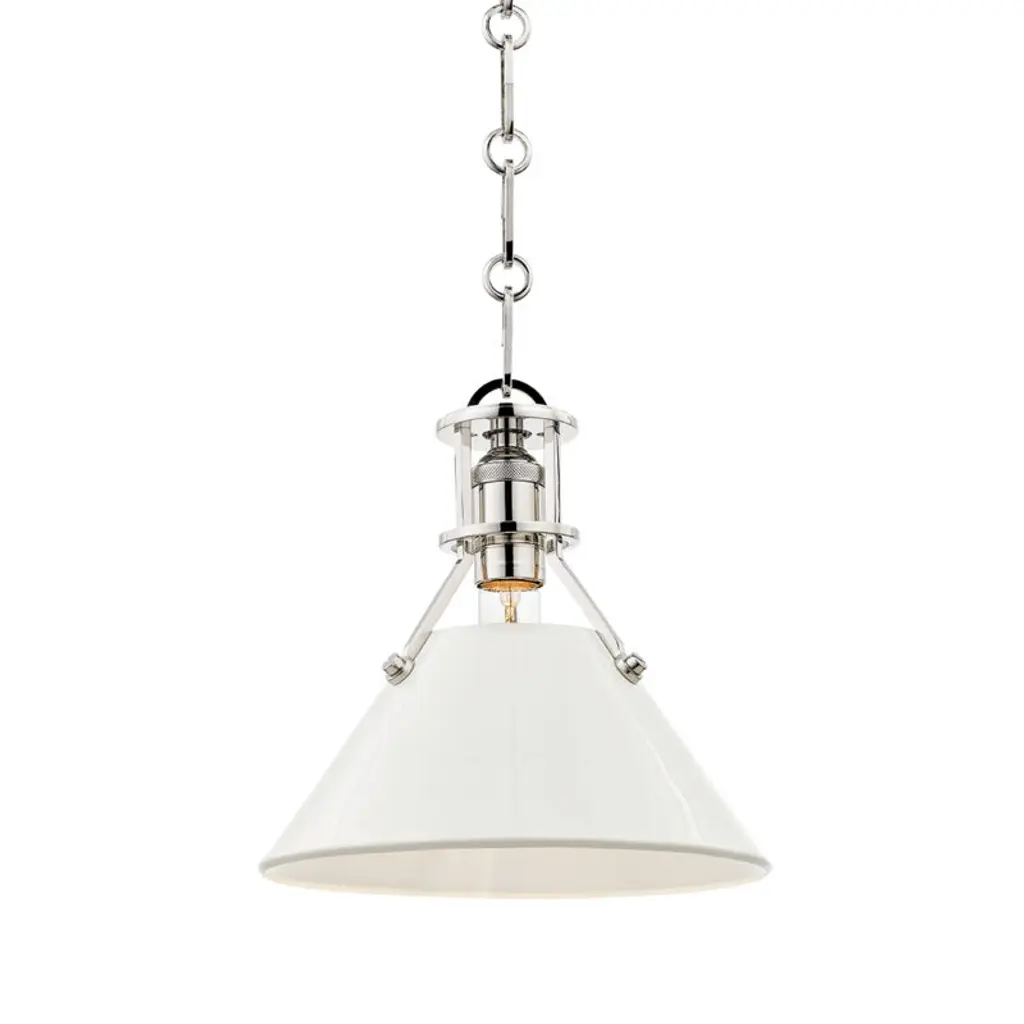 Painted No.2 1 Light 9.5 Inch Polished Nickel Pendant Ceiling Light In Polished Nickel/blue Bird