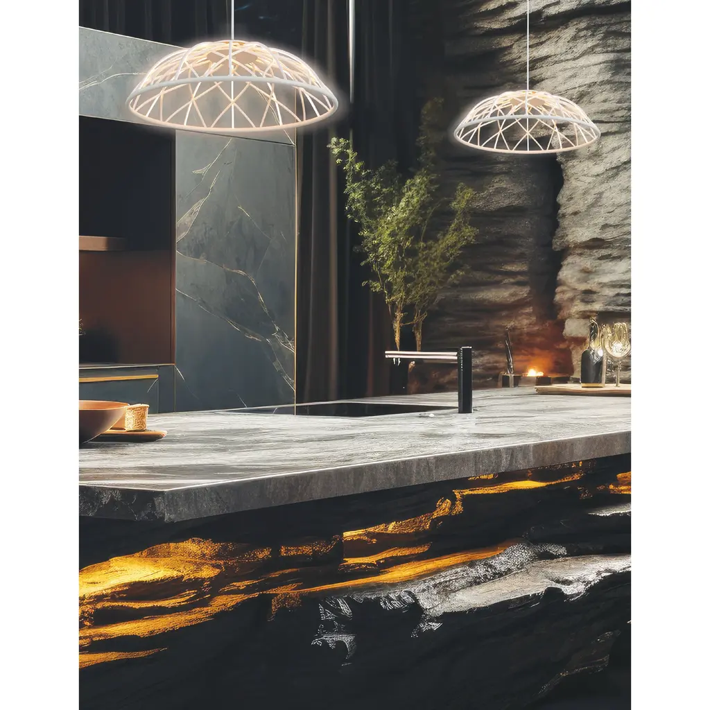 Add a touch of modern elegance to your dinette or bar with the Pakuna LED Pendant from Dainolite. This statement piece features a dome shape crafted from metal, fabric and silicone, providing a sleek and sophisticated look that complements any contemporary space. Perfect for creating a stylish focal point in your foyer or hall.