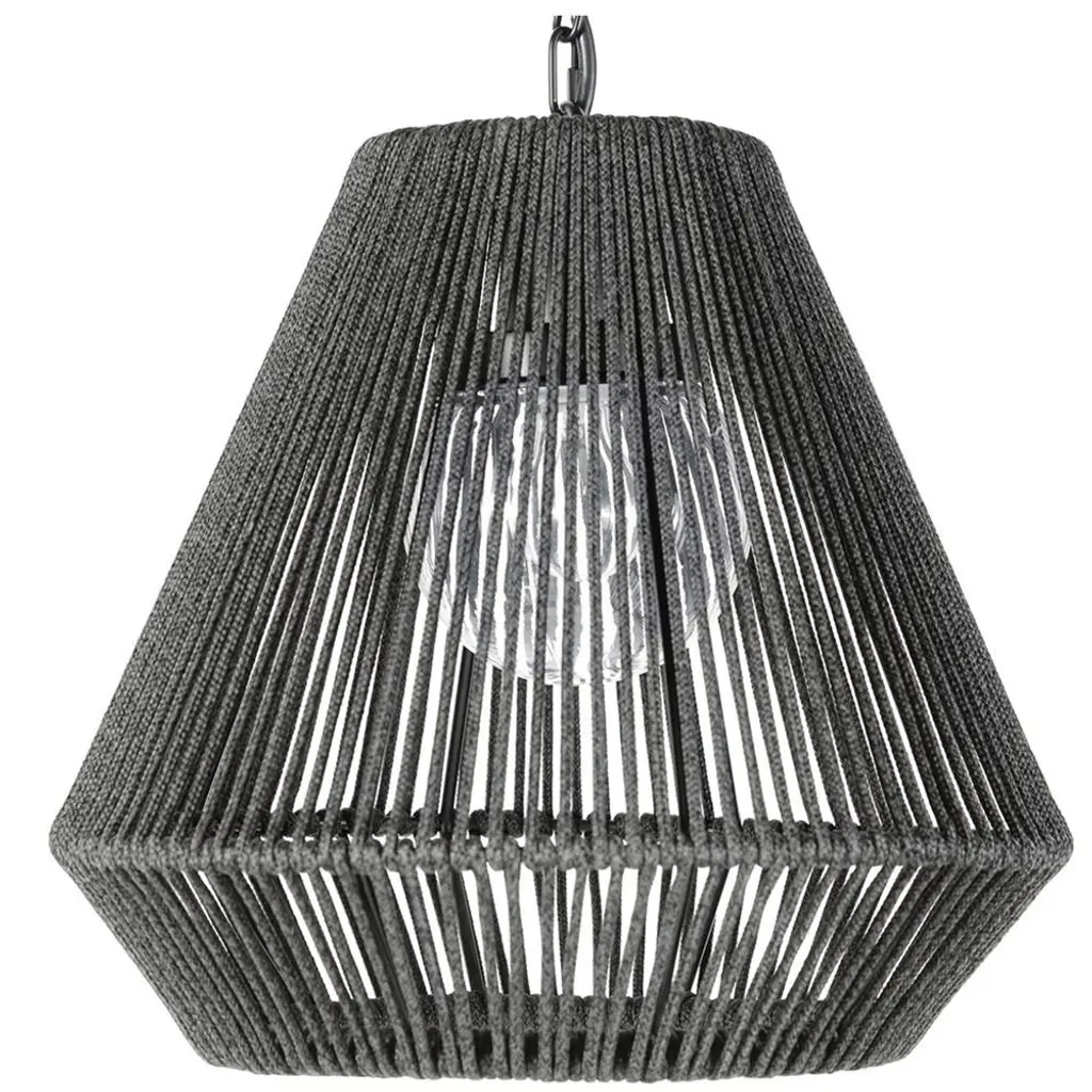 Palecek Tanner Coastal Beach Black Woven Wicker Outdoor Tapered Pendant Lantern