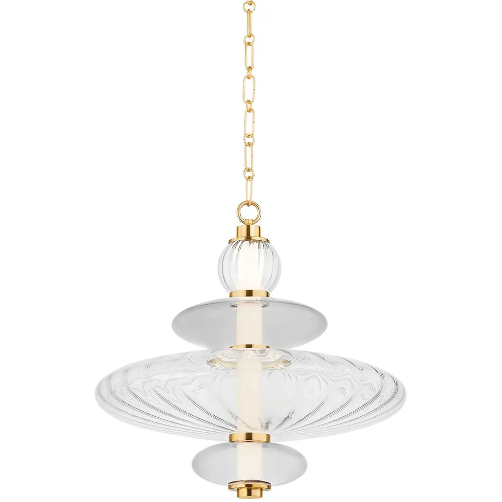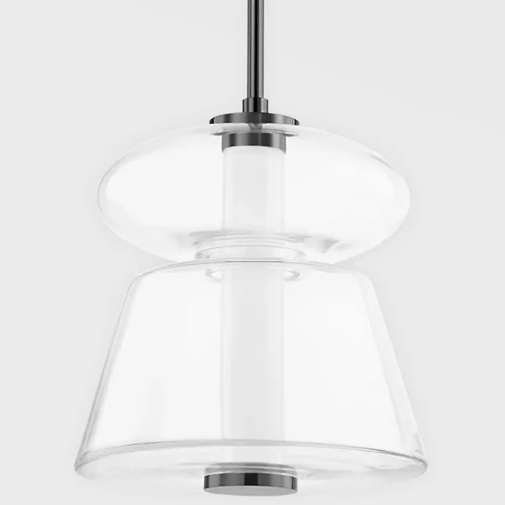 The modern styling of the Palermo LED Pendant by Hudson Valley Lighting originates from its distinctive use of classic lighting profiles and forms in a whole new imagining. Made using a clear hand blown glass, it features a downlight shade that creates geometric intrigue while effortlessly melding with existing decor motifs. That airy approach to interior design is complemented with its finished metal suspension and vibrant LED light tube center. A must have for introducing a contemporary vision to any home.