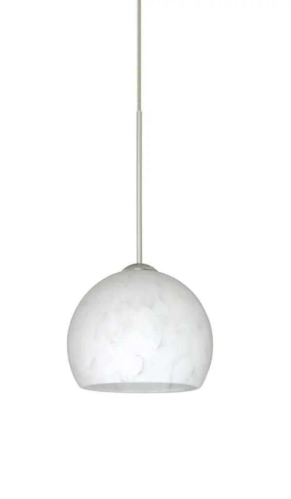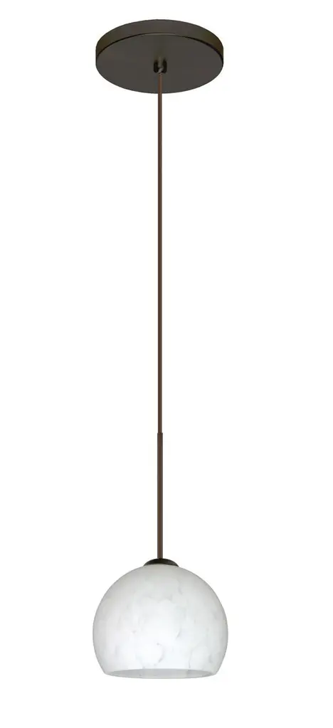 The Palla 5 features a diminutive orb-shaped glass, that complements any aesthetic. Our Carrera glass is a classic yet modern décor that gives off a soft white light. Clear molten glass is rolled in alabaster powder like frit, and then blown into shape with a semi-clear frosted white inner finish. This décor is created by rolling molten glass in small bits of white called frit. The smooth satin finish on the clear outer layer is a result of an extensive etching process. This blown glass is handcrafted by a skilled artisan, utilizing century-old techniques passed down from generation to generation. Each piece of this décor has its own artistic nature that can be individually appreciated. The 12V cord pendant fixture is equipped with a 10' braided coaxial cord with Teflon jacket and a low profile flat monopoint canopy. These stylish and functional luminaries are offered in a beautiful brushed Bronze finish.