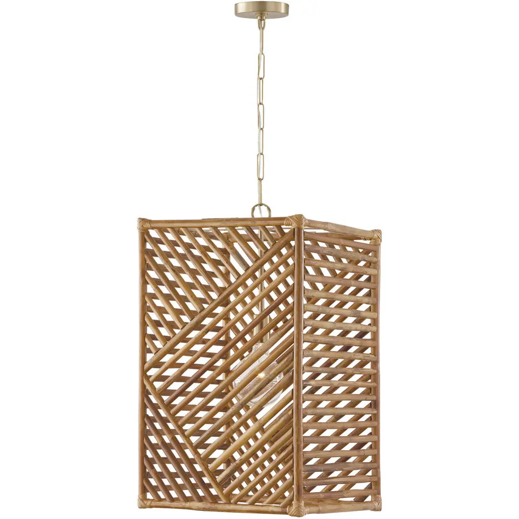 Named for the epicenter of gracious coastal living, the Palm Beach Lantern has high style in its bones. Made of interconnecting stems of the Arurog plant fastened to and with wrought iron, the semblance to bamboo echoes the epitome of West Indies flavor that wafted into the U.S. from the affluent enclave once upon a time. Adding a bit of elegance to the graceful curves of this four-light lantern is a Pyrite bronze finish on the metal.