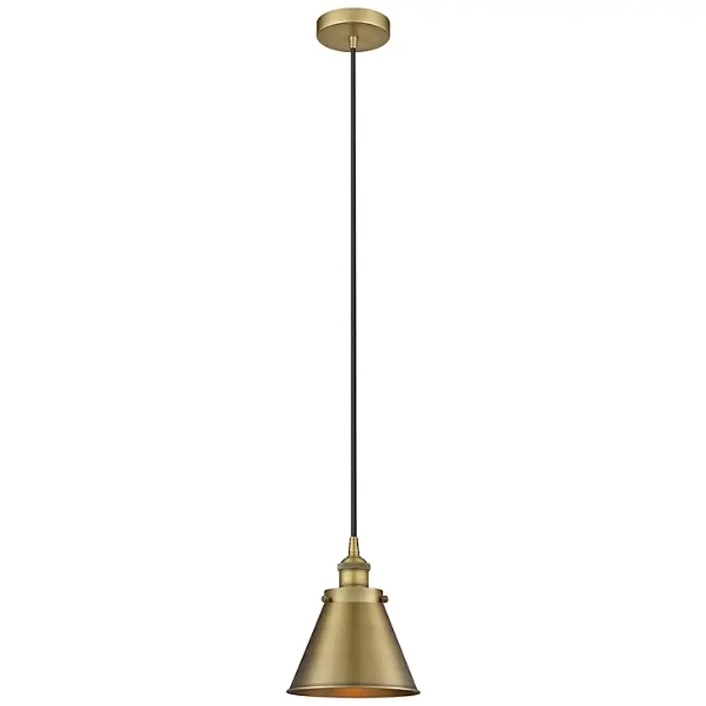 The Appalachian Palmira Mini Pendant by Alder & Ore is a refined lighting solution. Designed in a modern cone shape, it's perfect for kitchens or foyers, adding a touch of Art Nouveau style. Crafted with steel and cast brass, its sophisticated design complements transitional décor. This fixture is ideal for creating a warm ambiance in dinettes or kitchenettes. Its compatibility with various bulb types offers flexibility in lighting preferences, making it a versatile addition to any space.