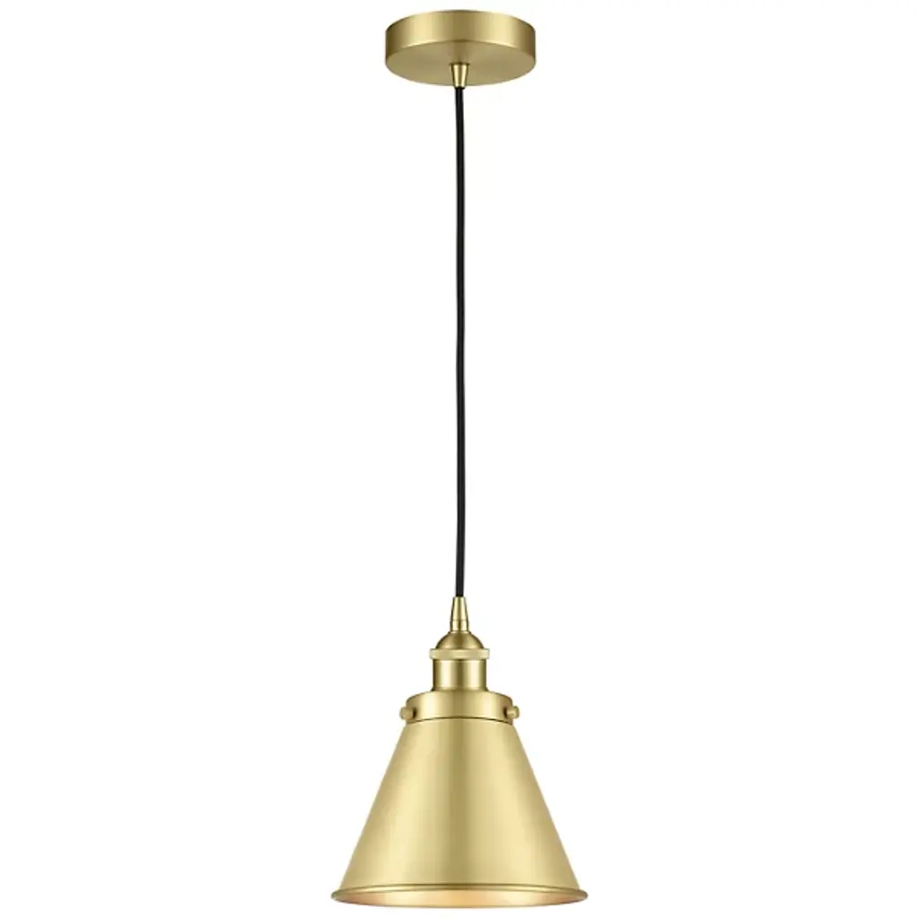 The Appalachian Palmira Mini Pendant by Alder & Ore is a refined lighting solution. Designed in a modern cone shape, it's perfect for kitchens or foyers, adding a touch of Art Nouveau style. Crafted with steel and cast brass, its sophisticated design complements transitional décor. This fixture is ideal for creating a warm ambiance in dinettes or kitchenettes. Its compatibility with various bulb types offers flexibility in lighting preferences, making it a versatile addition to any space.