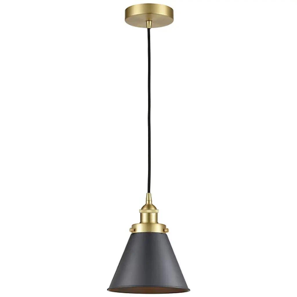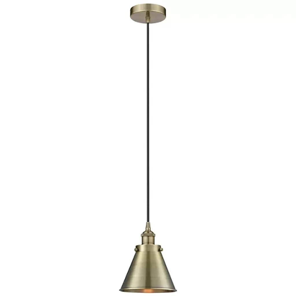 The Appalachian Palmira Mini Pendant by Alder & Ore is a refined lighting solution. Designed in a modern cone shape, it's perfect for kitchens or foyers, adding a touch of Art Nouveau style. Crafted with steel and cast brass, its sophisticated design complements transitional décor. This fixture is ideal for creating a warm ambiance in dinettes or kitchenettes. Its compatibility with various bulb types offers flexibility in lighting preferences, making it a versatile addition to any space.
