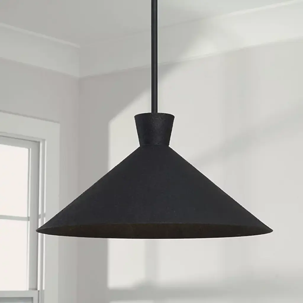 The Paloma Pendant is presented by Capital Lighting. A modern shape and eye-catching contours make this luxurious luminary a standout style. The trendy tapered metal accent is complemented by the textured finish, adding dimension and visual interest. Display the Paloma as a strong solo piece or elevate the energy with multiples among locales of choice.