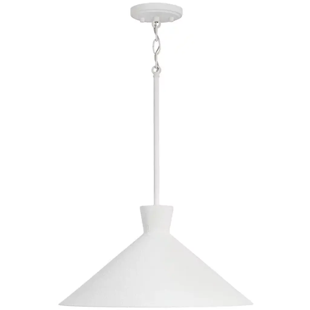 The Paloma Pendant is presented by Capital Lighting. A modern shape and eye-catching contours make this luxurious luminary a standout style. The trendy tapered metal accent is complemented by the textured finish, adding dimension and visual interest. Display the Paloma as a strong solo piece or elevate the energy with multiples among locales of choice.