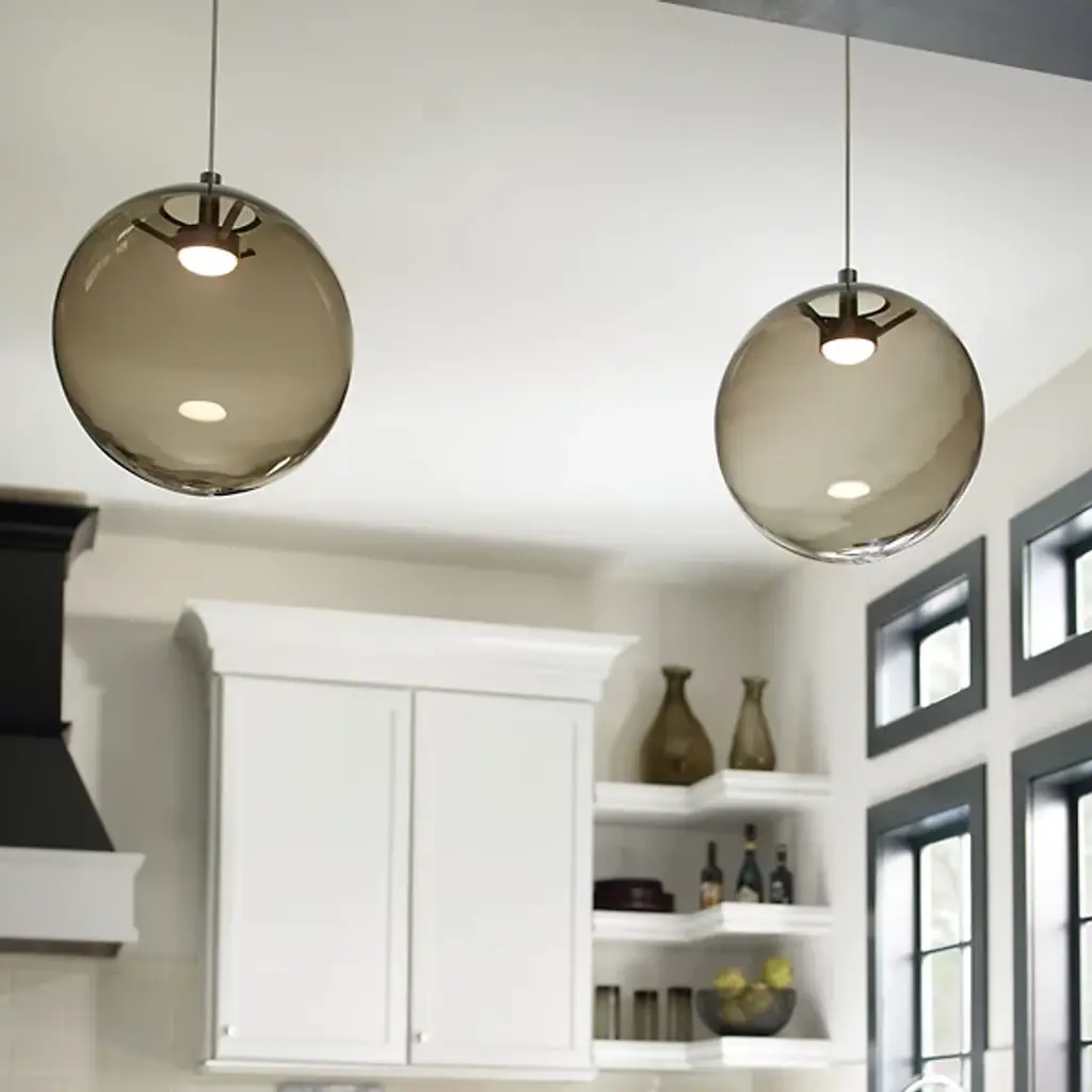 A dramatic blend of art and engineering. The Palona Pendant by Visual Comfort Modern, formerly known as Tech Lighting, showcases an orb of transparent hand-blown glass that is accented with highly engineered mechanical components. This stylistic contrast reinvigorates your surrounding space with a certain modern, transitional beauty. In addition, the LED light source uses warm color dimming technology which brings the color temperature down with the luminosity for a natural mood-lighting effect.
