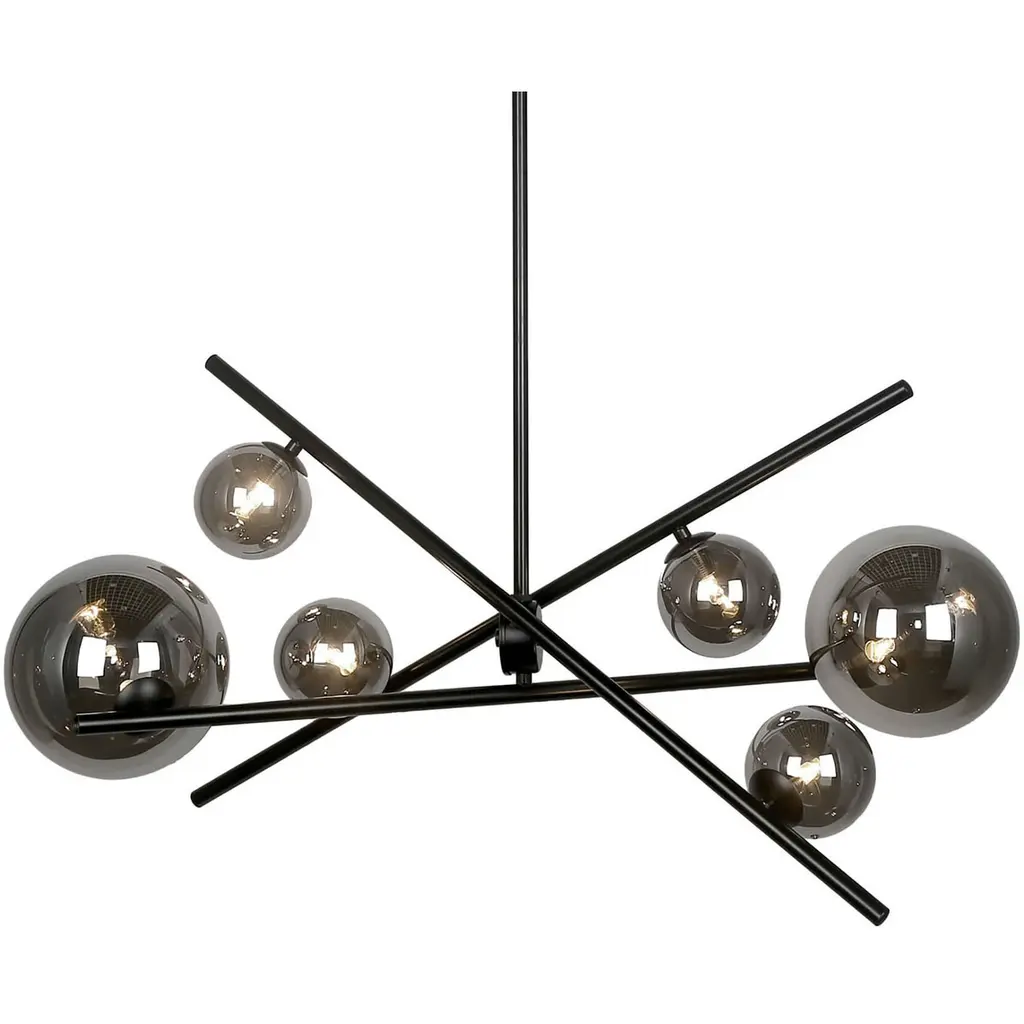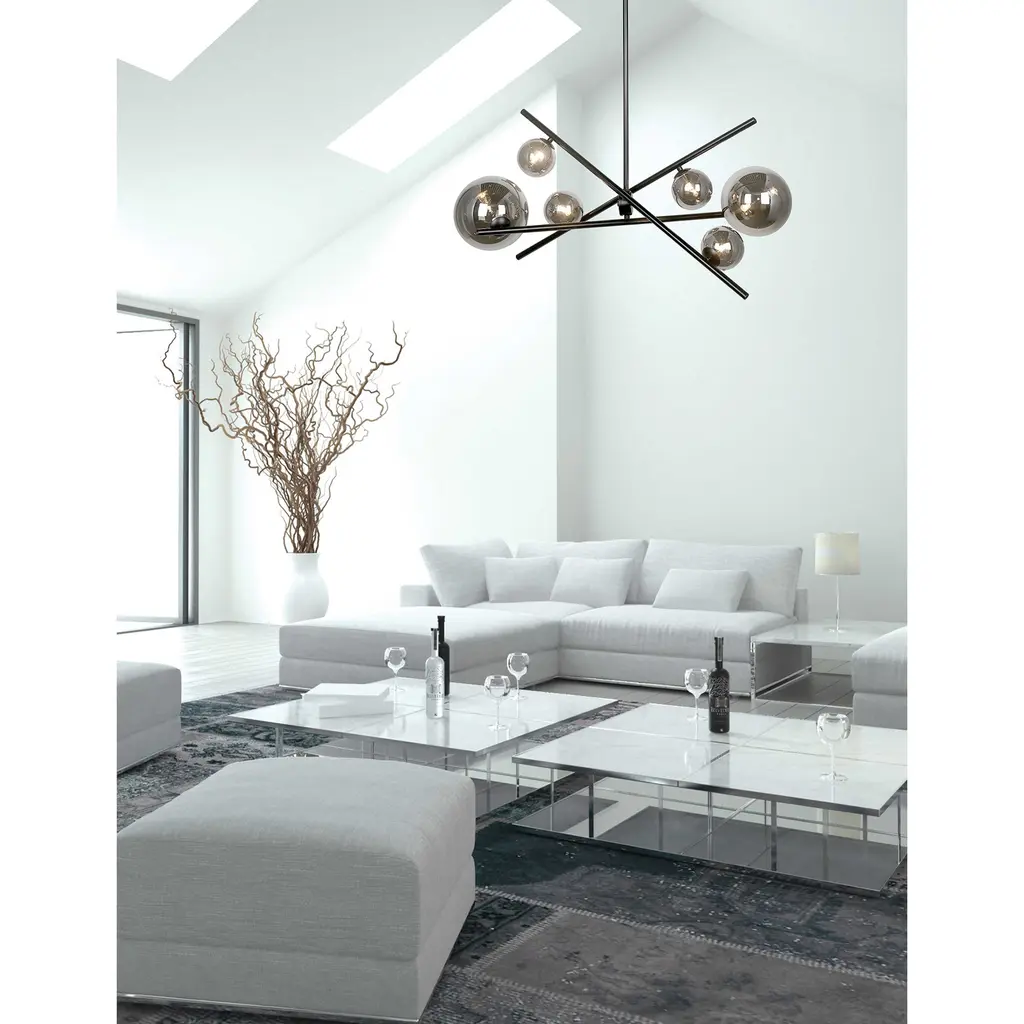 The Pamela family of lighting features an unusually playful sense of style. The contrast of globe lighting and a simple linear frame creates balance with an uncommon aesthetic. The metal linear frame is deceptively simple, and comes in a fashionable matte black finish. A smoky lustre on the glass globes nicely complements the frame, and provides a warm glow of light. Available as a table, floor or pendant light, the Pamela family of fixtures will draw attention in your fashionably modern or contemporary dining or living rooms, kitchen or bedroom.